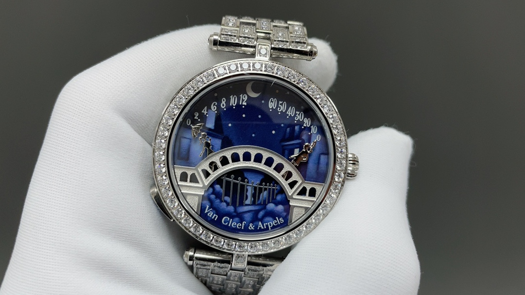 ‼️梵克雅宝 🌐四季情人桥腕表 💜梵雅克宝-Van Cleef&Arpels✨诗意复杂能功系列:恋人之桥最浪的漫手表 瑞定士做石英机芯升级最新版 蓝宝石玻璃镜升面级:表直壳径约38mm:情人升桥级为~纯材钢料 1比1复刻,女孩是时男针孩是分针,时针分和针都是用高科技、技术做成的3D效果针.按一下七字位按钮🔘:会自动走三次来回:亲吻 巜三生三世》表达的你爱意。按三字位按钮一下:自己走到当时的时间后会发现恋人💑在悄悄地走到中间去接吻之后各自回到零点。还什等么,最佳物礼就它了💜梵克雅宝,这个充满诗意与浪漫的品牌,一直致力于向爱情致敬。他们的情人桥手表,以其独特的设计和精湛的工艺,成为了许多时尚名媛的心头好。 这款手表的设计灵感来源于情人桥,寓意着爱情的永恒与美好。它采用了逆跳的钟表技术,巧妙地表达了恋人之间的柔情蜜意和缱绻缠绵。表盘以春夏秋冬为主题,色彩绚丽,诗意盎然,仿佛在诉说着每一个季节的爱情故事。 无论是春夏的明媚阳光,还是秋冬的落叶飘零,这款手表都能以一种独特而诗意的方式引导你度过每一天。它的颜值之高,简直让人惊叹不已,简直是美爆了的艺术品。 梵克雅宝希望通过这款手表,向所有有情人传递美好的祝福:愿你们拥有美好的爱情,生活灿烂,幸福直到永久🌐