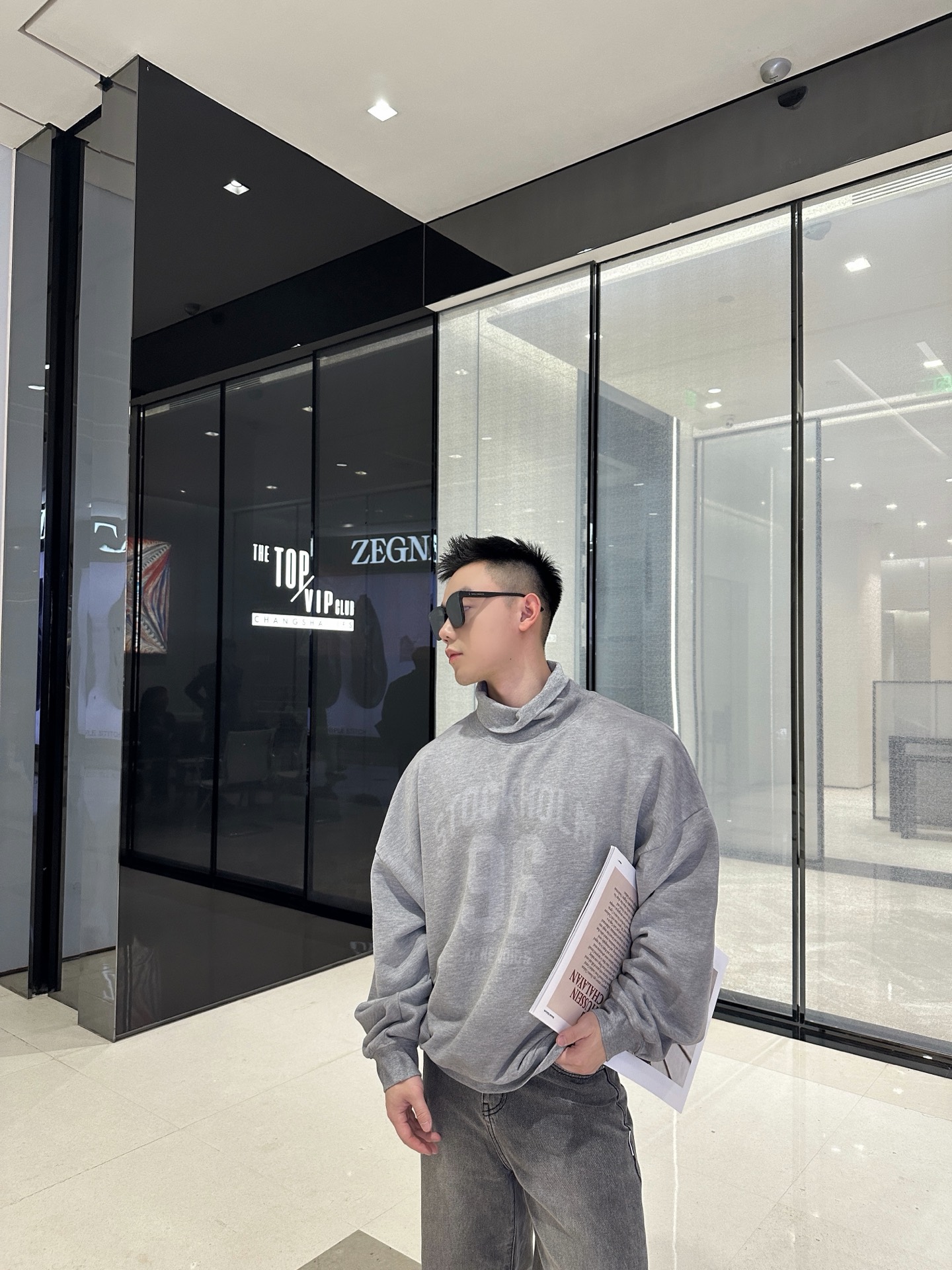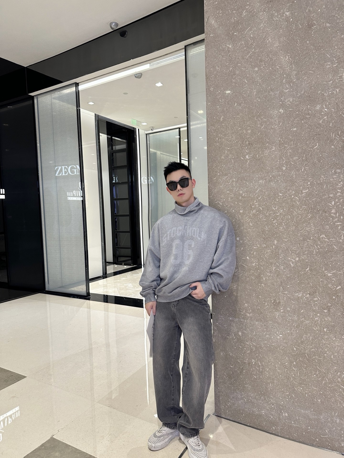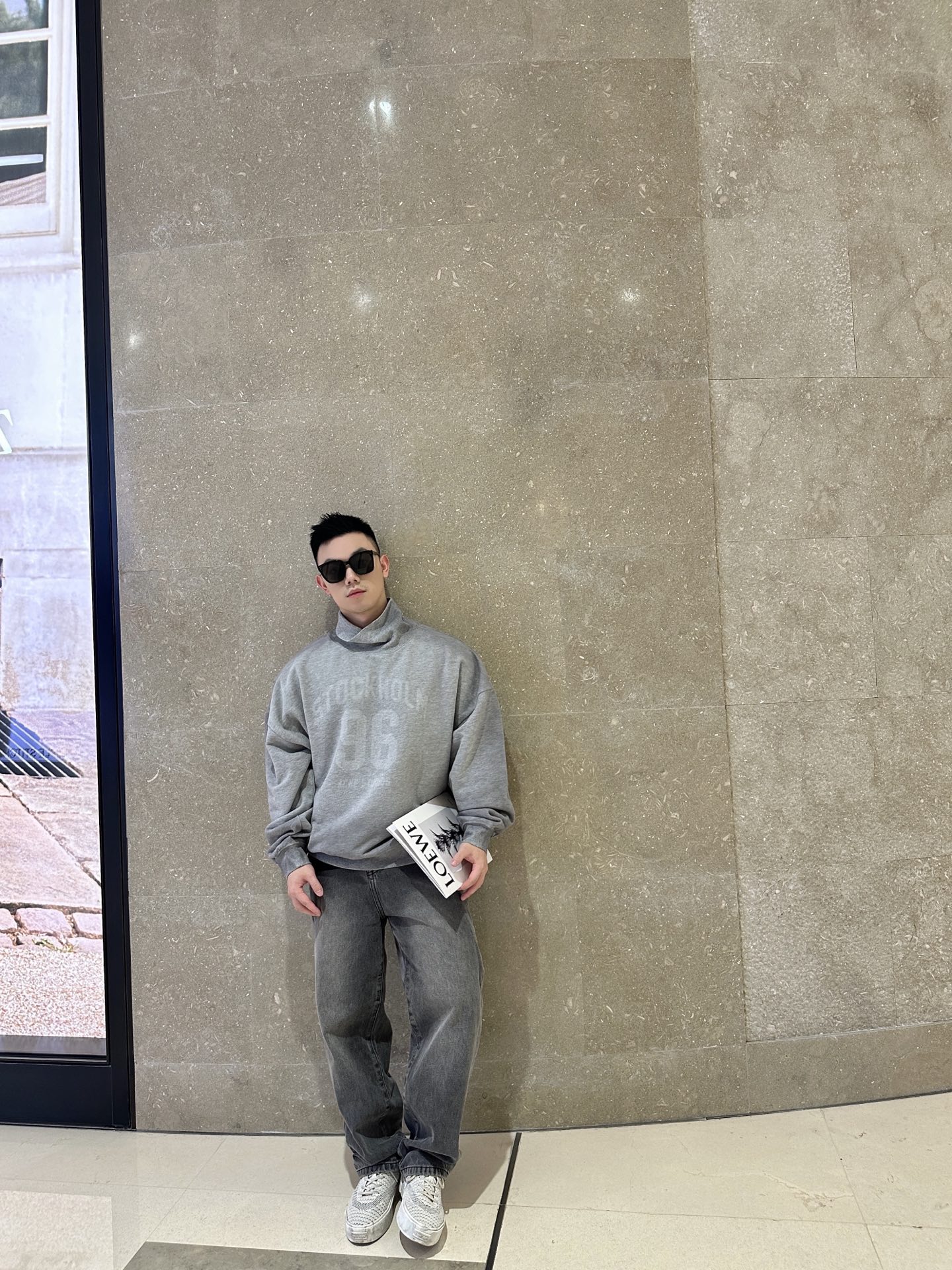 ACNE STUDIOS 模糊印花徽标高领卫衣 上身效果#