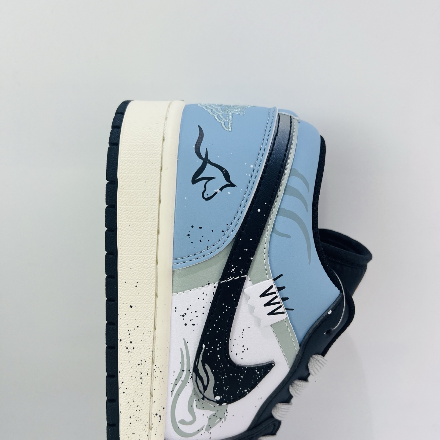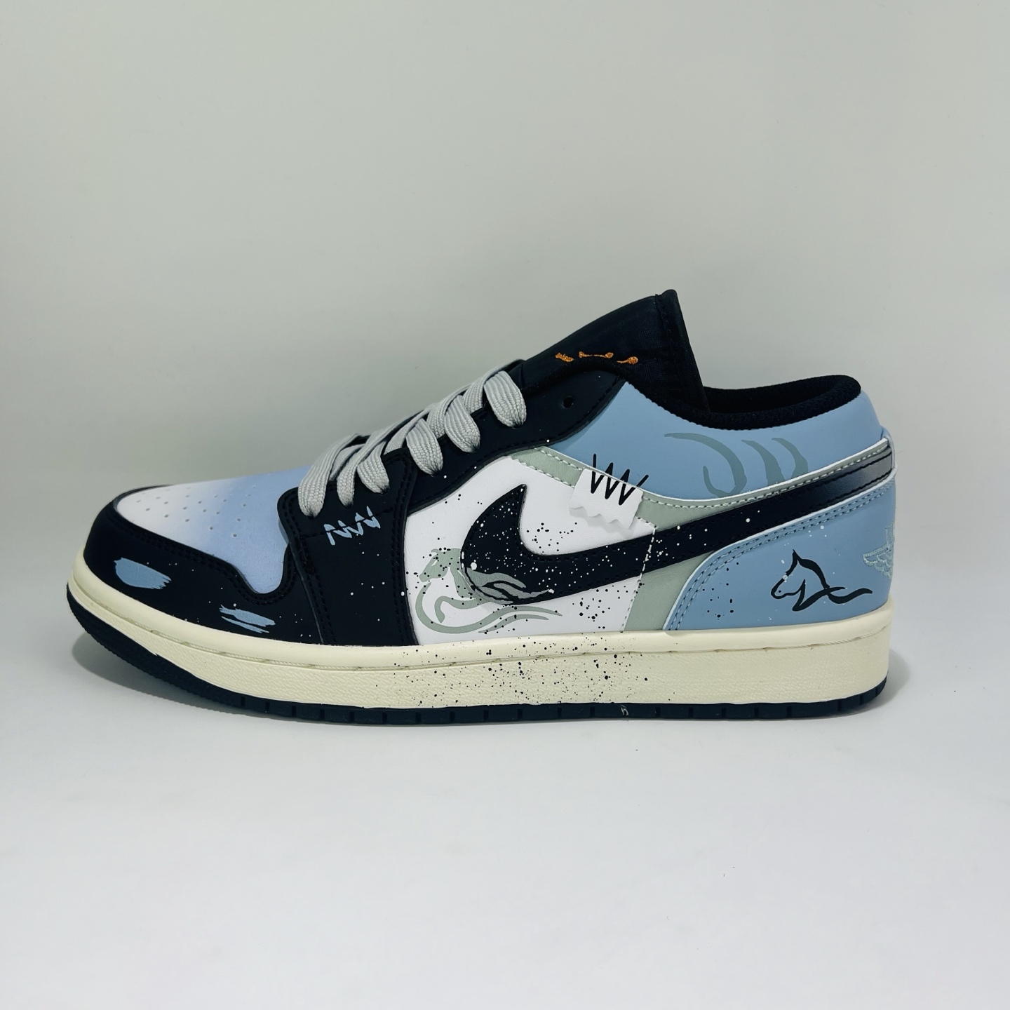 BL19# 【定制球鞋】Jordan Air Jordan 1 奔腾不息 马年限定 国风 新中式 清新 休闲 泼墨 减震 低帮 复古篮球鞋 男女同款 黑蓝 货号:553558-081 码数:36-47.5(带半码)