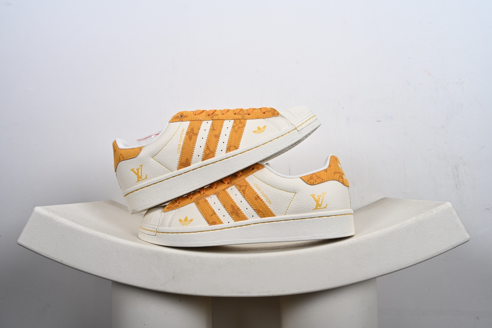 AD Originals Superstar x Louis Vuitton 采用全新头层拼接皮革材质后跟采用特色3D立体印字 渠道正品订单 诠释市场最高工艺水平全鞋进口头层皮料打造区别市面普通真标版本,进出专柜无压力