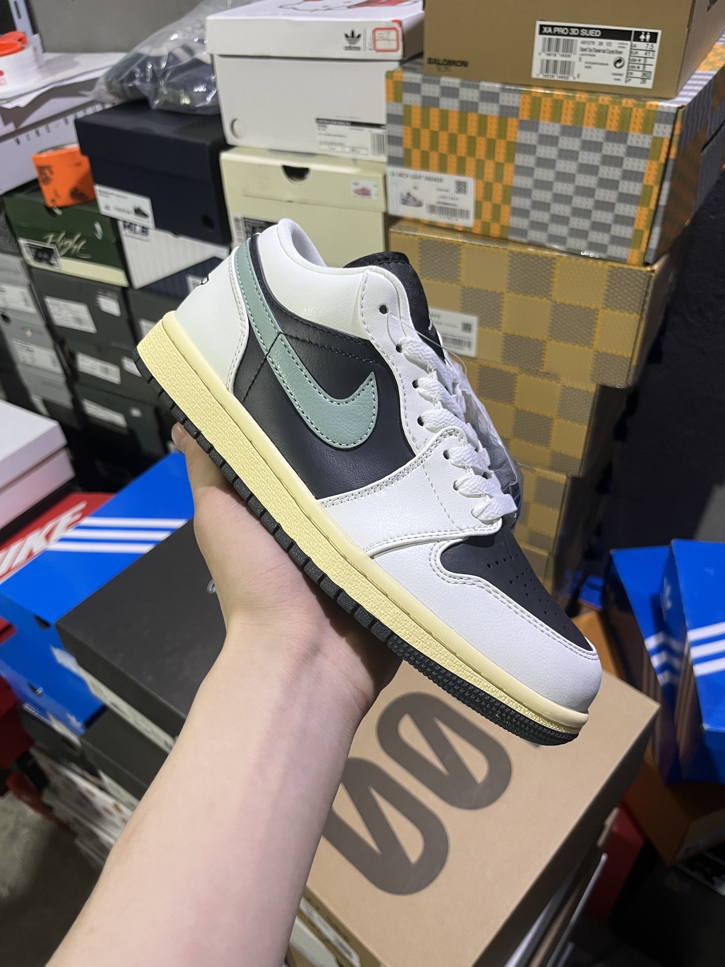#实拍鉴赏 #仓库随手拍上新 #Y版头层/小DT版 💰90 Jordan Air Jordan 1 Low Jade Smoke 皮革 简约舒适 耐磨 低帮 复古篮球鞋 男女同款 黑绿色 货号:DC0774-001 尺码:36-46