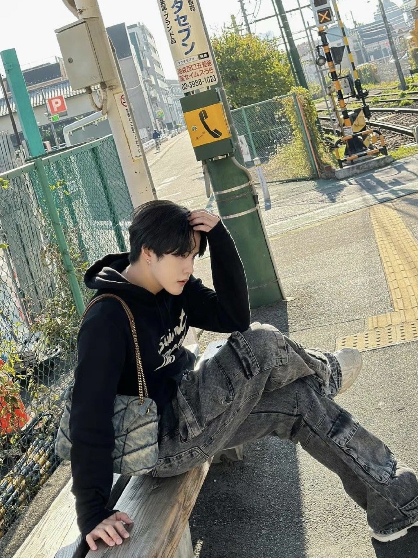 SAINT LAURENT圣罗兰SLP 胸前印花连帽卫衣 上身效果#