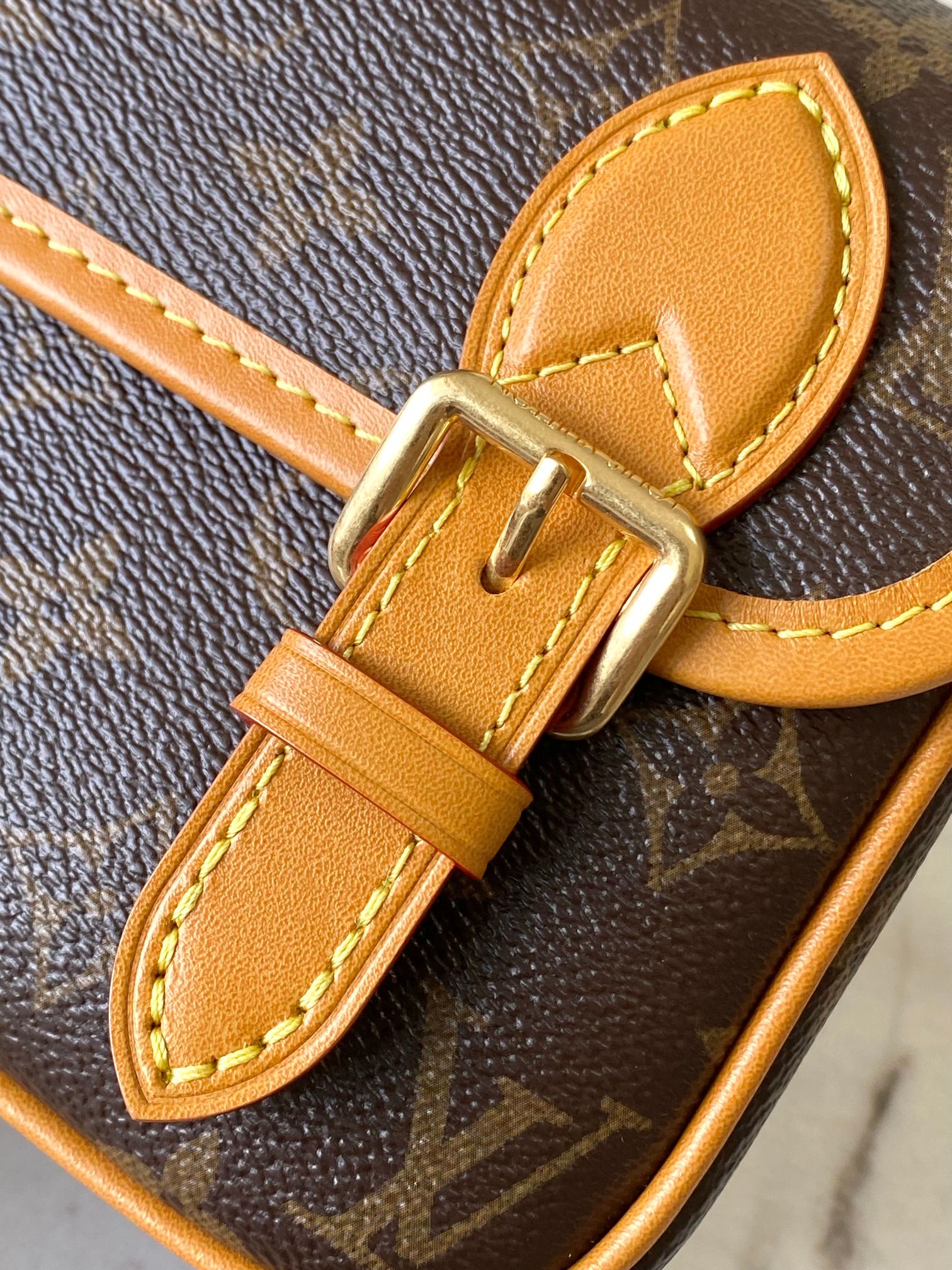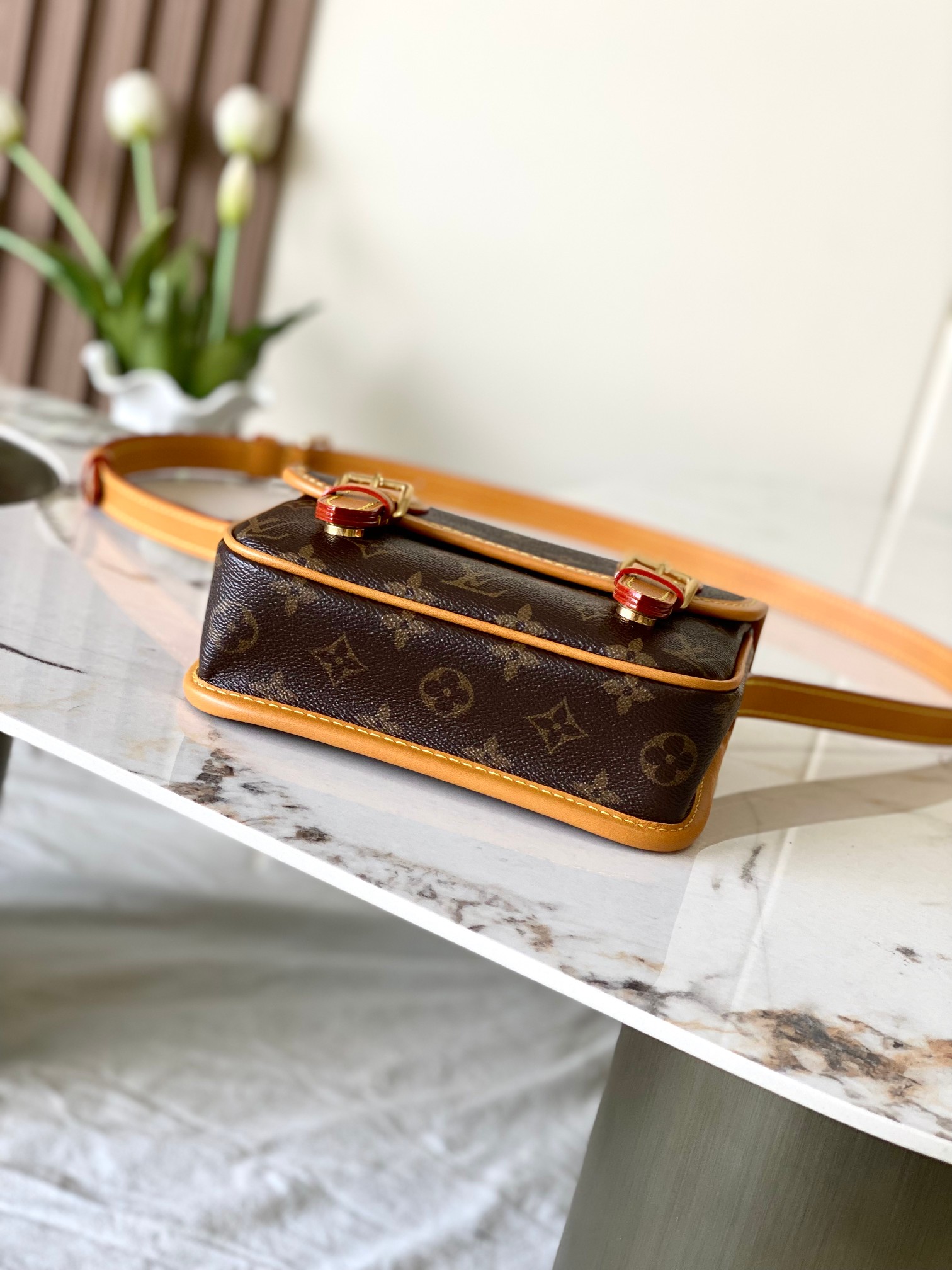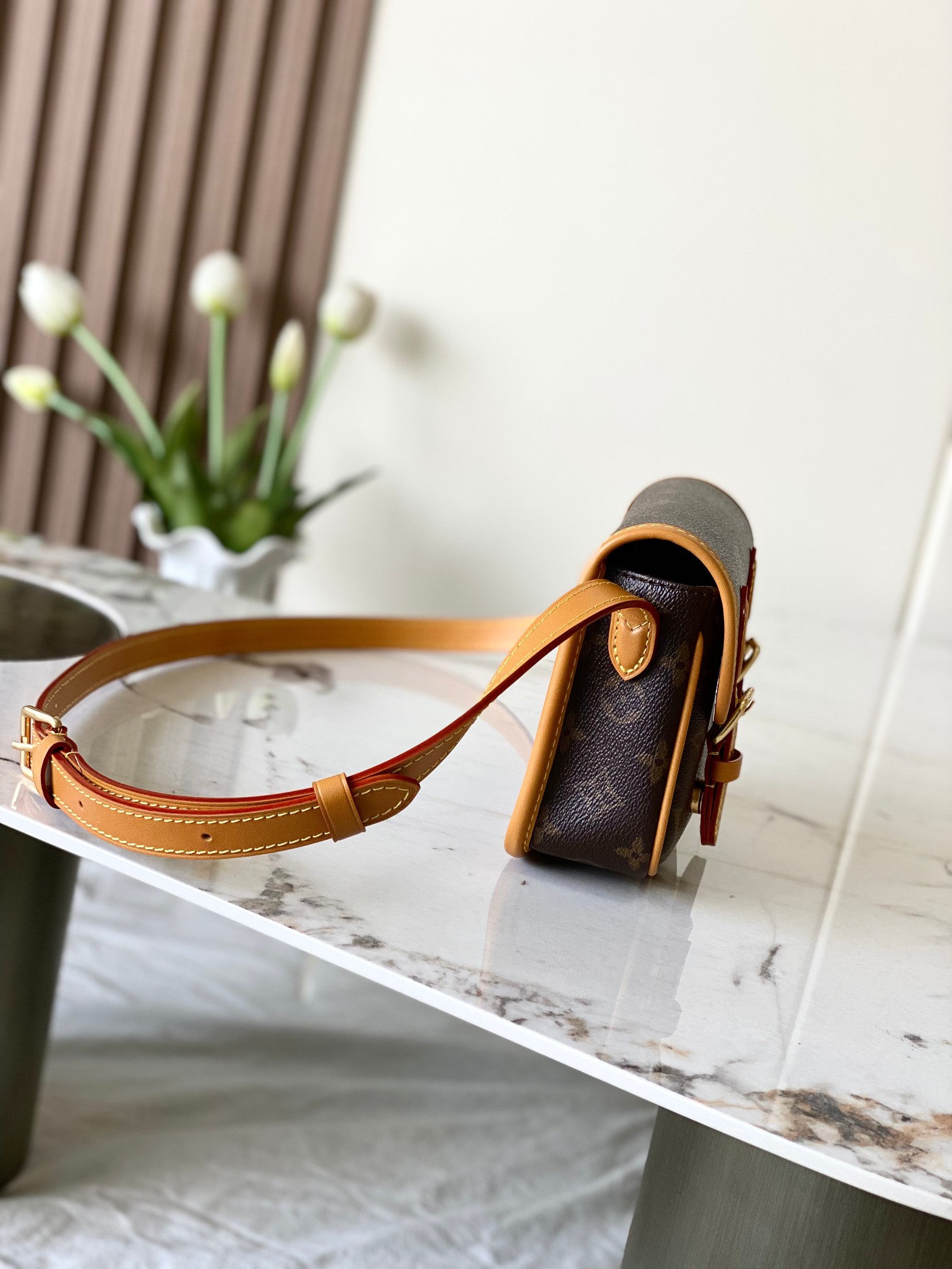 P610,原单加强版+半钢五金【SATCHEL 迷你手袋】 m26805 本款 Satchel 迷你手袋出自 Monogram Archive 系列,为柔软 Monogram 帆布包身搭配做旧皮革饰边和耀目金属件。迷你邮差包构型可容纳手机及钱夹等日常用品。可调节肩带确保舒适肩背或斜跨。 尺寸:15 x 6 x 19.5 厘米 (高 x 宽 x 长度)