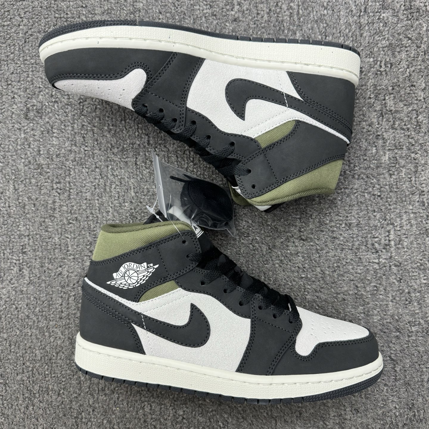 💰380 头层带半码 Air Jordan 1 Mid 中帮 黑灰绿 AJ1 乔丹1代 aj1 乔1 中邦 黑灰绿 乔丹篮球鞋系列 整双鞋最大的亮点在于鞋帮部位采用了优雅的绿色帆布呈现,在色彩和材质的共同烘托下,让整双鞋极具奢华气息;鞋款整体以灰色麂皮打造,搭配黑色皮革框架覆盖层,鞋身两侧Swoosh Logo采用黑色点缀,鞋舌上以橄榄绿Jumpman Logo及Air呈现,鞋领处Wwings Logo则以白色压印妆点,最后以白色中底搭配灰色橡胶外底完善整体设计收尾。 货号:HV4091-102(2025版) 尺码:36 36.5 37.5 38 38.5 39 40 40.5 41 42 42.5 43 44 44.5 45 46