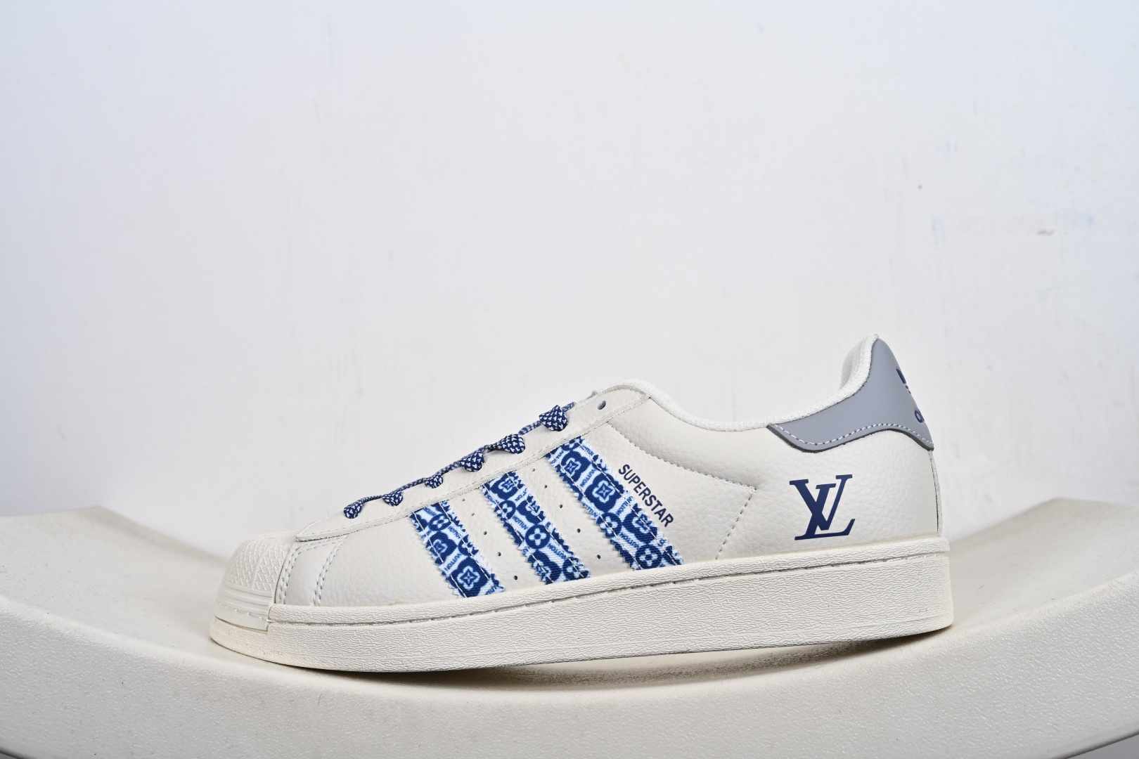 AD Originals Superstar x Louis Vuitton 采用全新头层拼接皮革材质后跟采用特色3D立体印字 渠道正品订单 诠释市场最高工艺水平全鞋进口头层皮料打造区别市面普通真标版本,进出专柜无压力