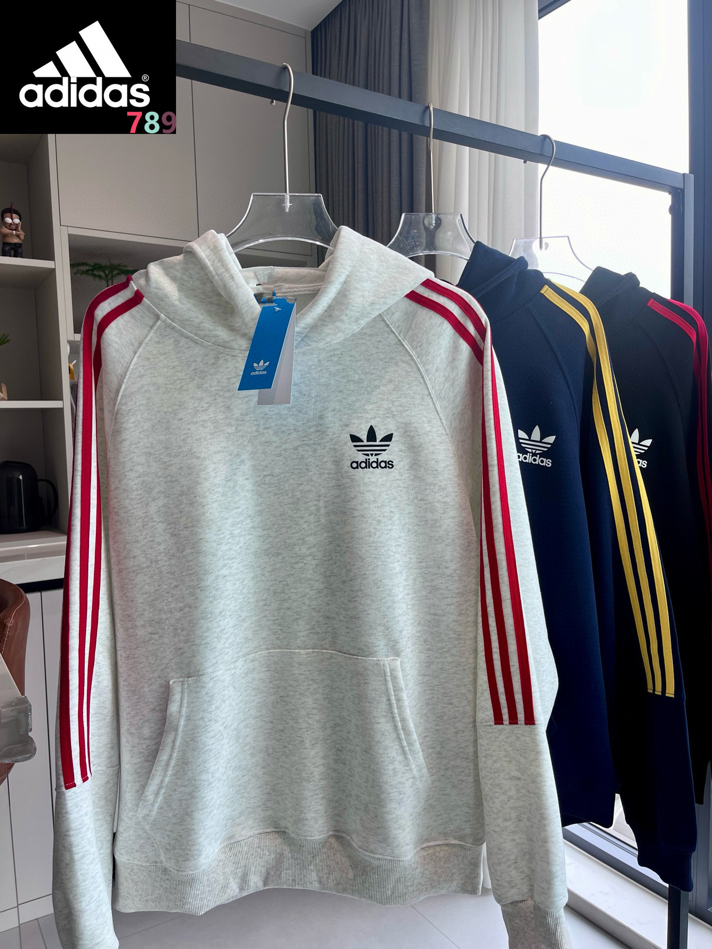 P130💰 【三叶草撞色三杠卫衣】 🍩阿迪达斯Adidas 三叶草休闲撞色三杠连帽卫衣,名副其实的百穿不厌系列,os版型上身效果超赞,三个配色都是超级好看的,三个色也都巨好搭,太宝藏了,连帽的设计,这款太有心思了,下身随便配,绝绝子,男女同款情侣款哦 颜色:黑色 白色 蓝色