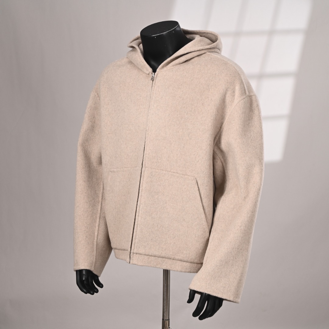 ACNE STUDIOS 双面羊绒连帽外套-燕麦色 实拍图