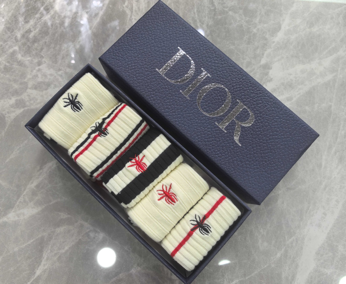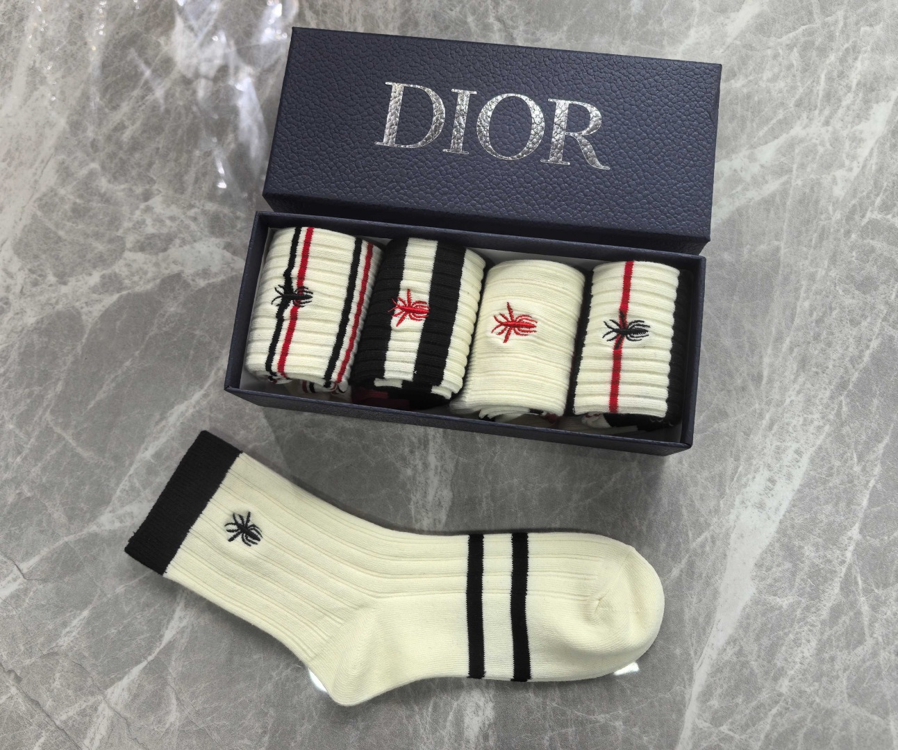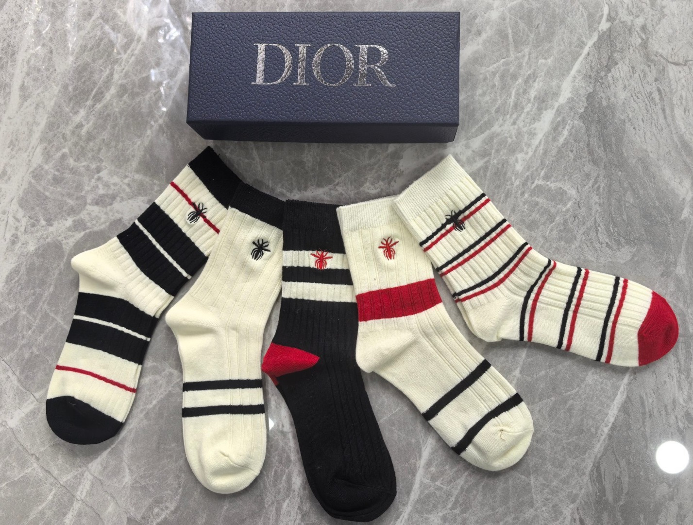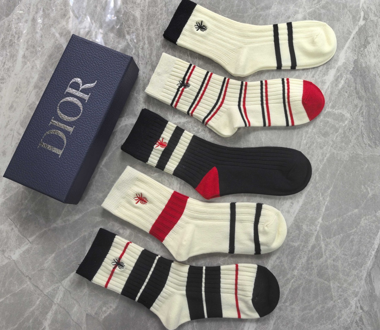 特价💰99 💛配专柜包装 DIOR(迪奥)最新双针中长筒刺绣款堆堆袜袜子!一盒五双,专柜同步筒袜袜子,💛大牌出街,潮人必备🔥超好搭