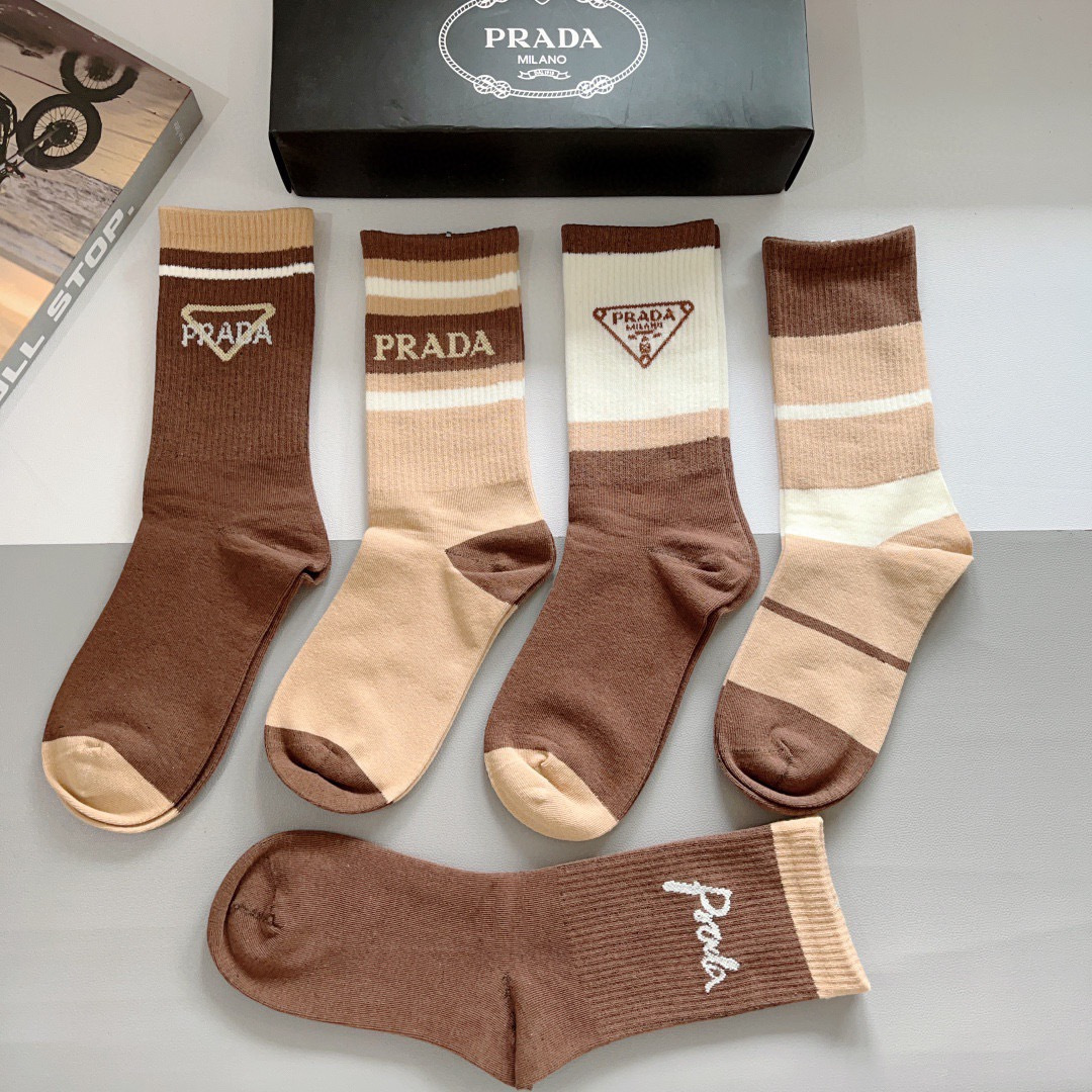 配包装特价💰99(一盒5双) 特价💰RADA(普拉达) 新款高端纯棉材质小腿袜子!爆款三角标字母专柜同步长筒袜,💛大牌出街,潮人必备🔥超好搭