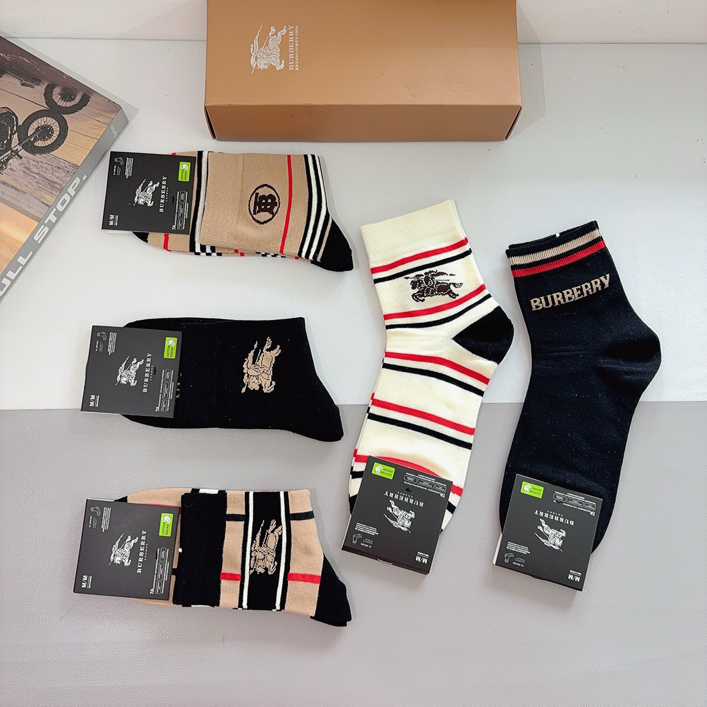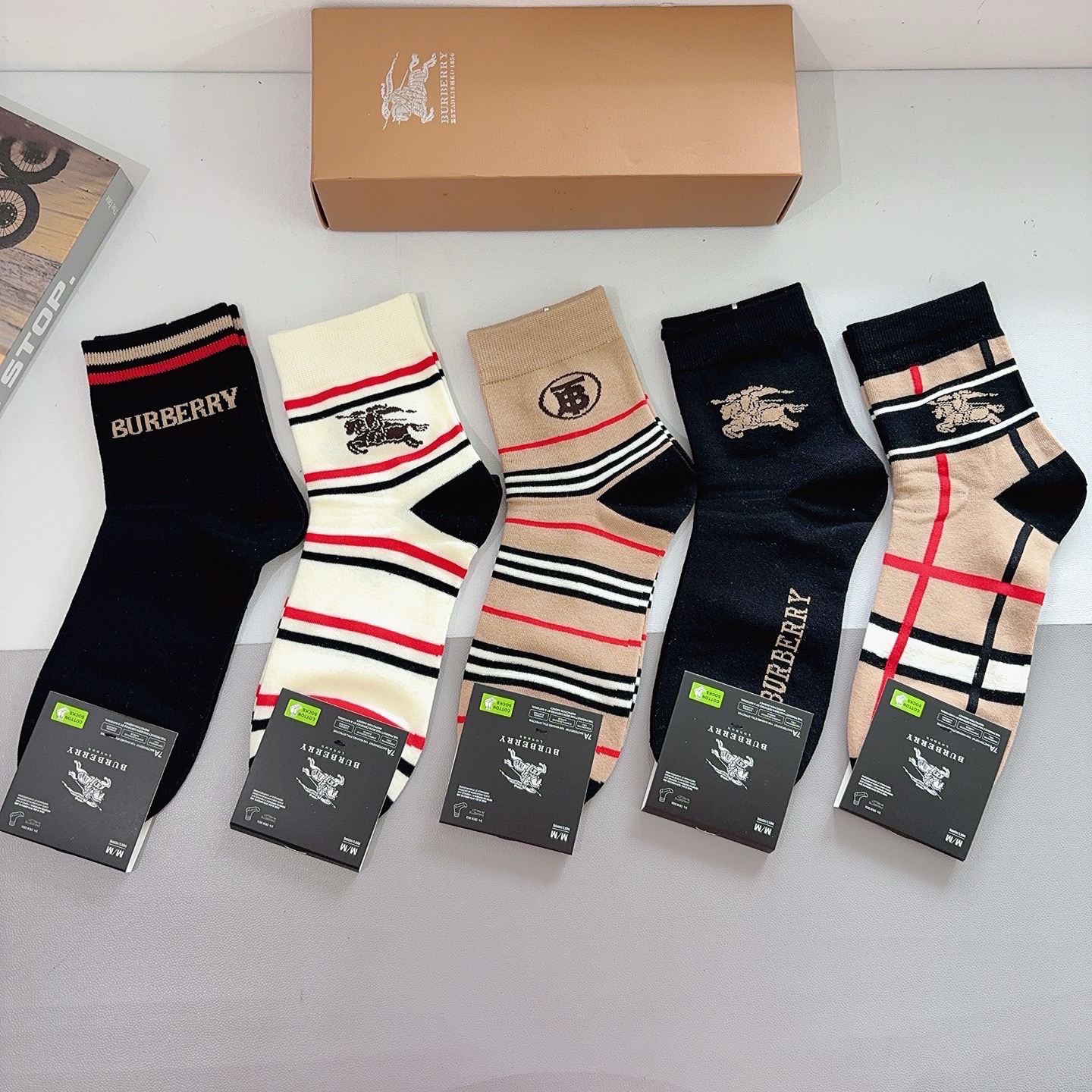 配包装特价💰99(一盒5双) Burberry 巴宝莉 超火爆男款中筒袜子、纯棉面料,潮人必备款,个性时尚百搭款,!你值得拥有哦💗超柔软材质,舒适透气!