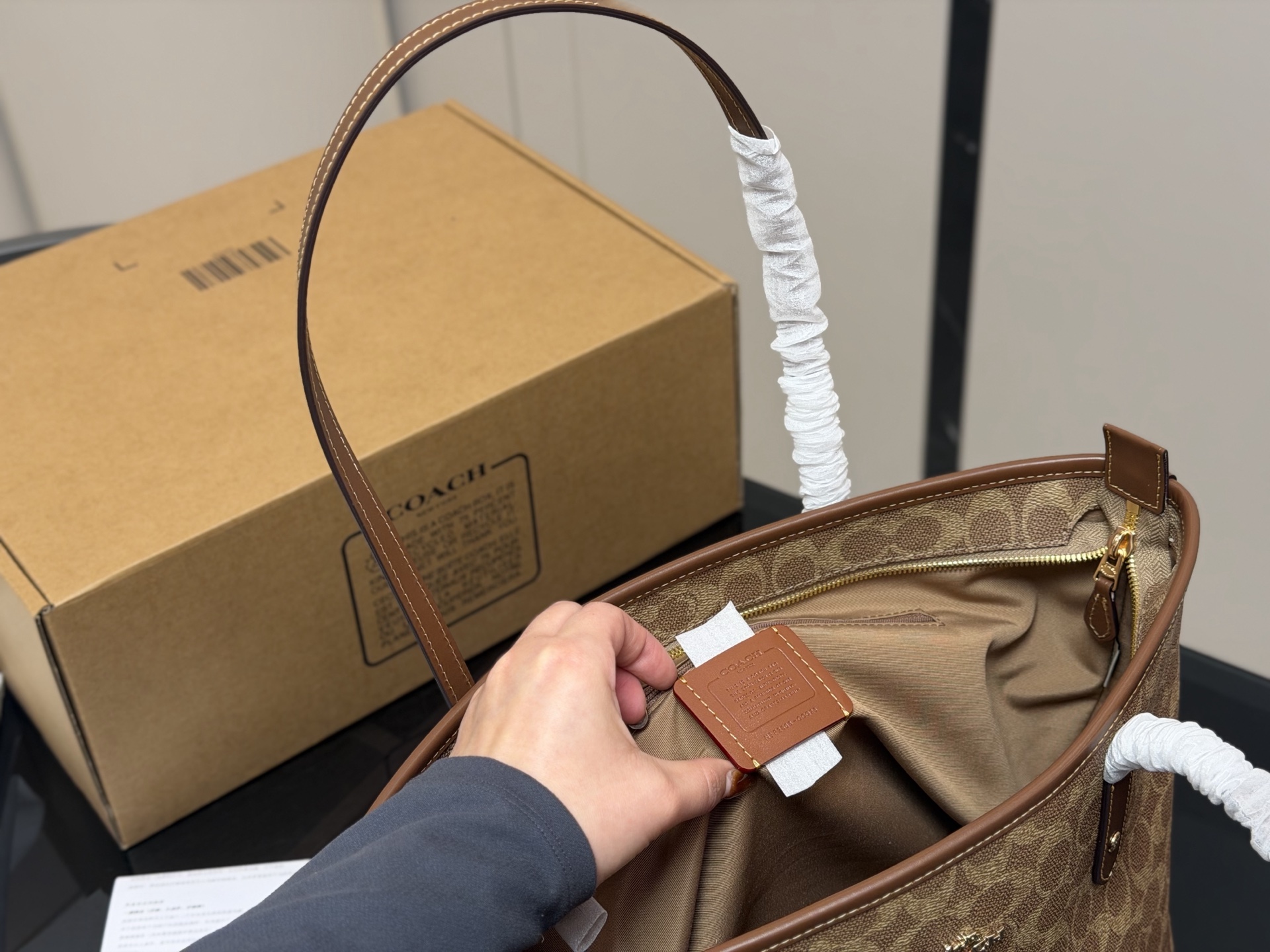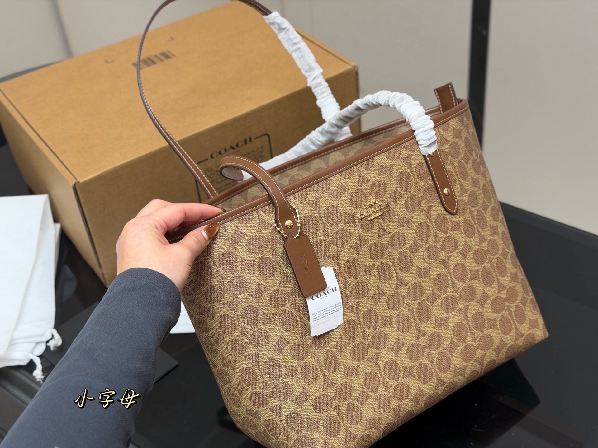 ¥385 配飞机盒(拉链款复刻版) size:底宽30上宽40*高35 蔻驰单面拉链款托特包/购物袋 大爆款 分分钟断货! 搭配不同衣服 city30 一年四季都可以用! 搜索🔍coach 购物袋