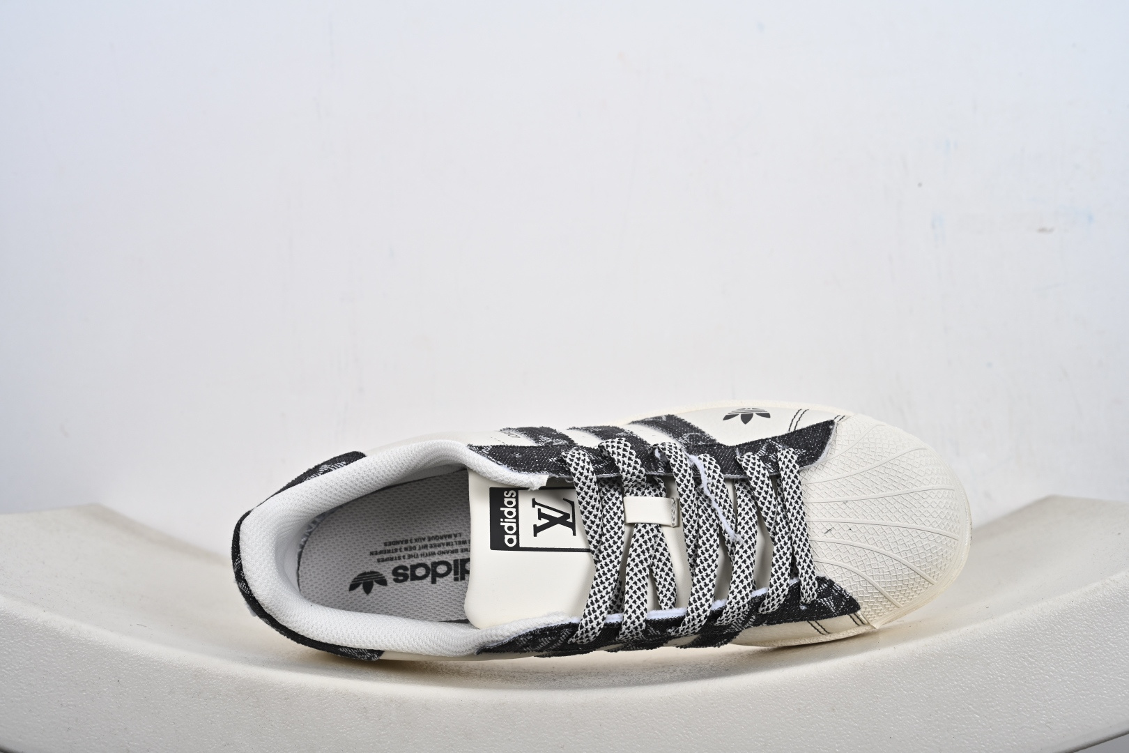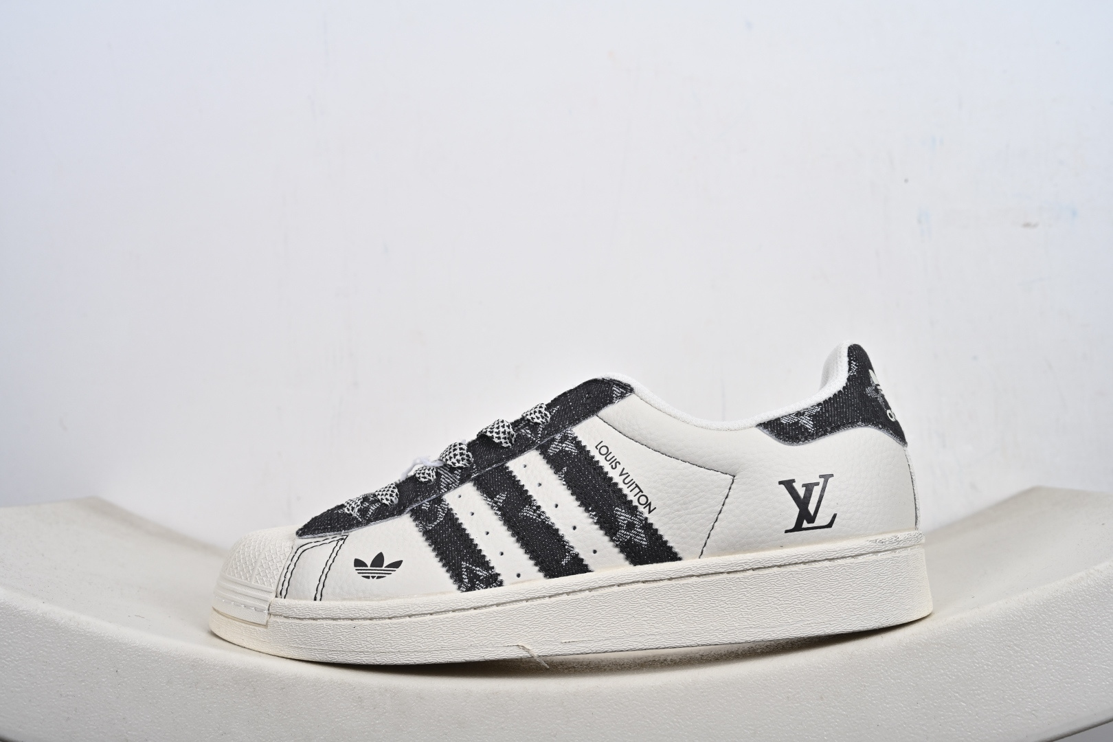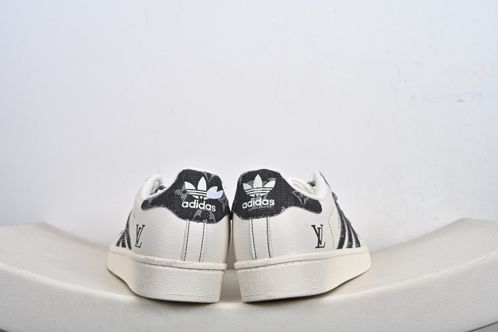 AD Originals Superstar x Louis Vuitton 采用全新头层拼接皮革材质后跟采用特色3D立体印字 渠道正品订单 诠释市场最高工艺水平全鞋进口头层皮料打造区别市面普通真标版本,进出专柜无压力