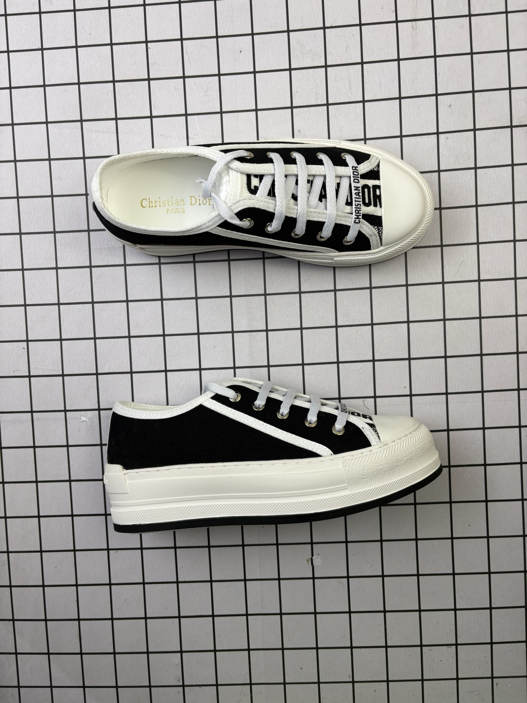 💰180 公司级✅女鞋广东原产#升级原楦原纸版数据开发版型#采用进口机台精密电脑提花刺绣工艺裹边处理鞋面材质#软感绵羊皮内里贴合PU高弹发泡增高鞋垫#外置增高橡胶隔色大底(明显增高4.0cm厘米)❗️法国高奢时装品牌-迪奥/Dior Walk’n‘Dior Low 沃克系列低帮百搭增高休闲运动厚底板鞋“帆布岩石灰”KCK385OBE_S33G 尺码:35-40 编码旭 这款 Walk’n‘Dior 厚底运动鞋是一款时尚单品,提升该系列的格调。深蓝色 Oblique 印花棉质刺绣鞋面,搭配舒适厚底、鞋舌和 Christian Dior Paris 标志鞋带。可为各式休闲造型增添时髦气质。 鞋舌、鞋底和鞋带饰有品牌特色细节 EVA 鞋底饰以 Christian Dior 的幸运星符号 另附鞋带一面