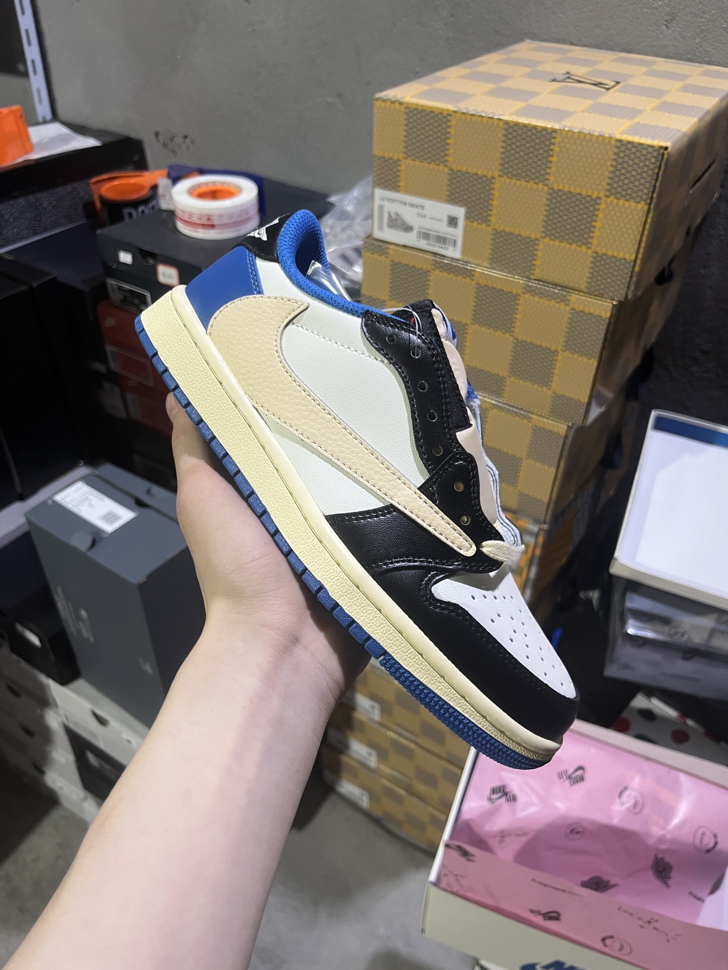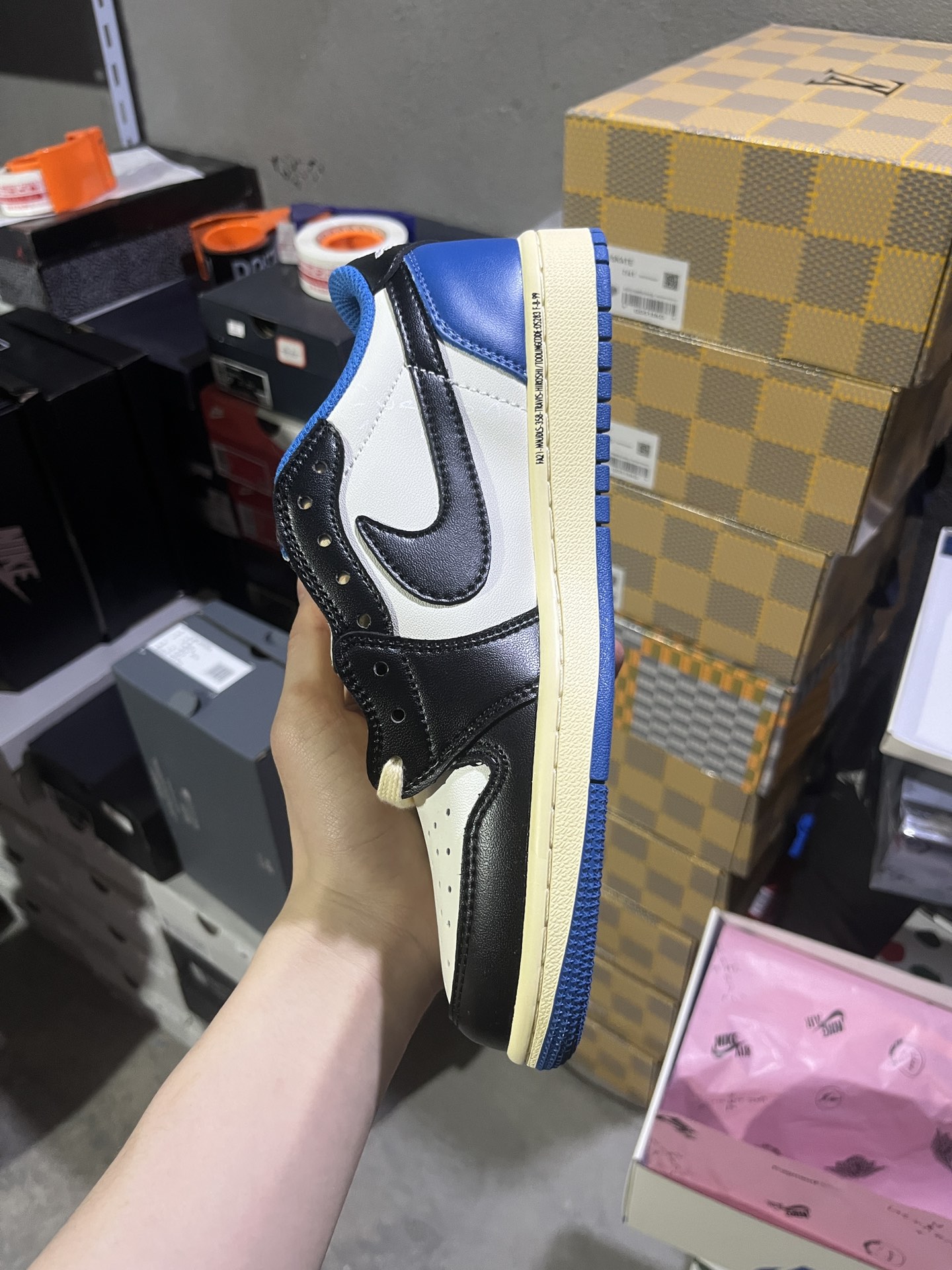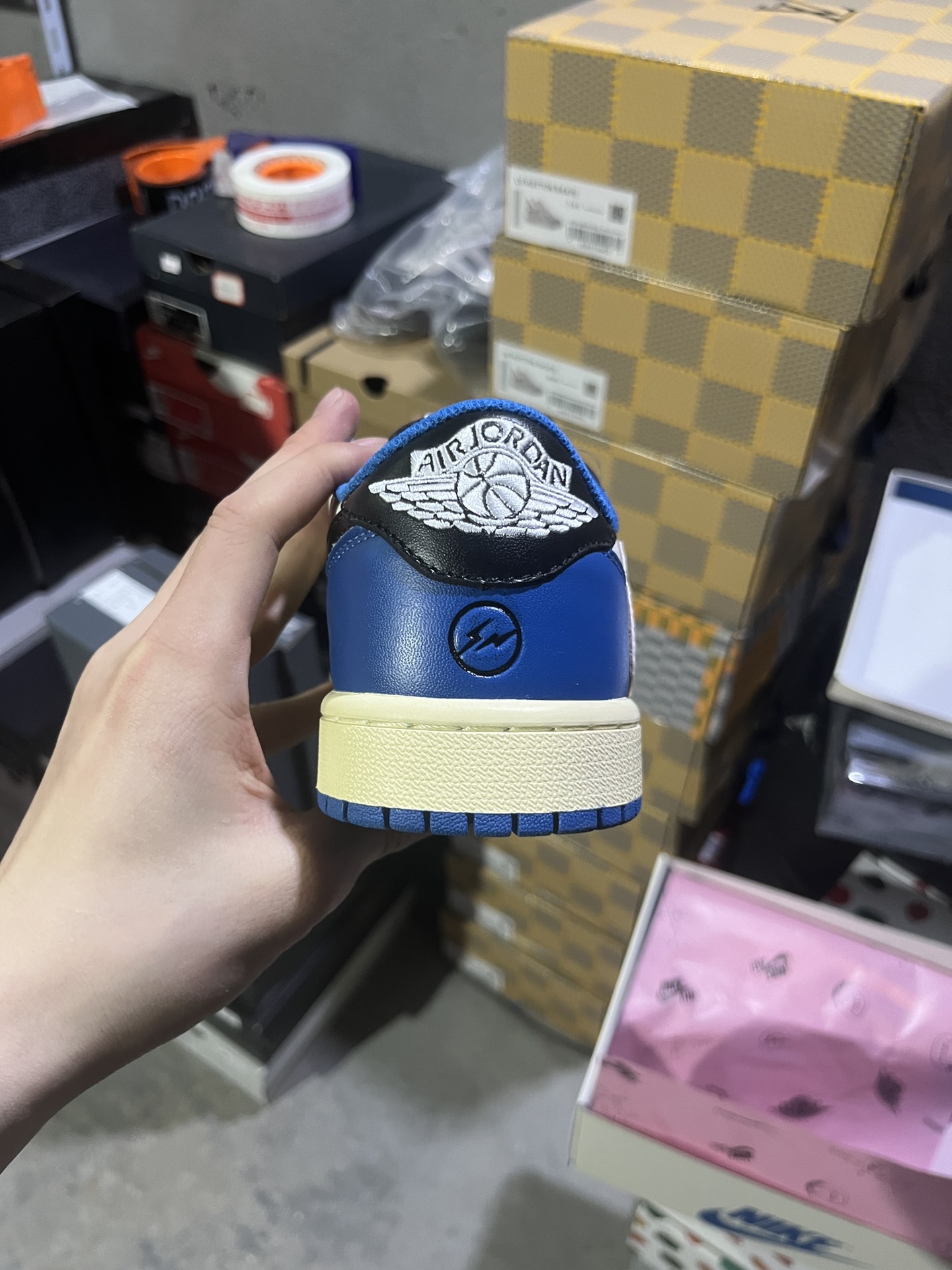 #实拍鉴赏 #仓库随手拍上新 #Z版福利倒钩 💰90 Travis Scott x Fragment Design x Jordan Air Jordan 1 OG款 Low SP 倒钩2.0 三方联名闪电 低帮 篮球鞋 男女同款 白蓝黑 货号:DM7866-140 尺码:36-47