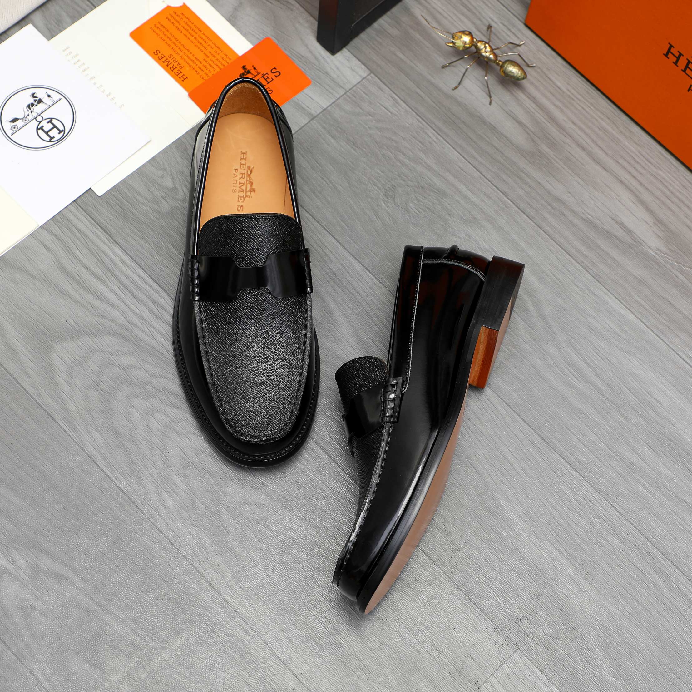P350 商品商标:HERMES「 爱玛仕」商务套脚皮鞋 正码码数: 38-46 (38.45.46定做不退换) 商品材料:精选荔纹牛皮拼接珠光牛皮鞋面 牛皮内里 原版橡胶大底
