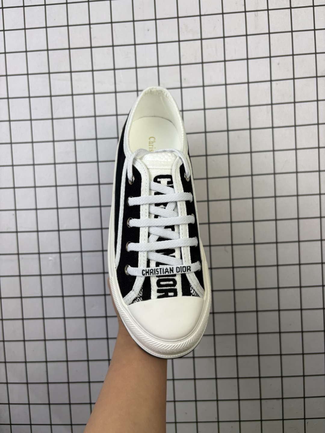 💰180 公司级✅女鞋广东原产#升级原楦原纸版数据开发版型#采用进口机台精密电脑提花刺绣工艺裹边处理鞋面材质#软感绵羊皮内里贴合PU高弹发泡增高鞋垫#外置增高橡胶隔色大底(明显增高4.0cm厘米)❗️法国高奢时装品牌-迪奥/Dior Walk’n‘Dior Low 沃克系列低帮百搭增高休闲运动厚底板鞋“帆布岩石灰”KCK385OBE_S33G 尺码:35-40 编码旭 这款 Walk’n‘Dior 厚底运动鞋是一款时尚单品,提升该系列的格调。深蓝色 Oblique 印花棉质刺绣鞋面,搭配舒适厚底、鞋舌和 Christian Dior Paris 标志鞋带。可为各式休闲造型增添时髦气质。 鞋舌、鞋底和鞋带饰有品牌特色细节 EVA 鞋底饰以 Christian Dior 的幸运星符号 另附鞋带一面