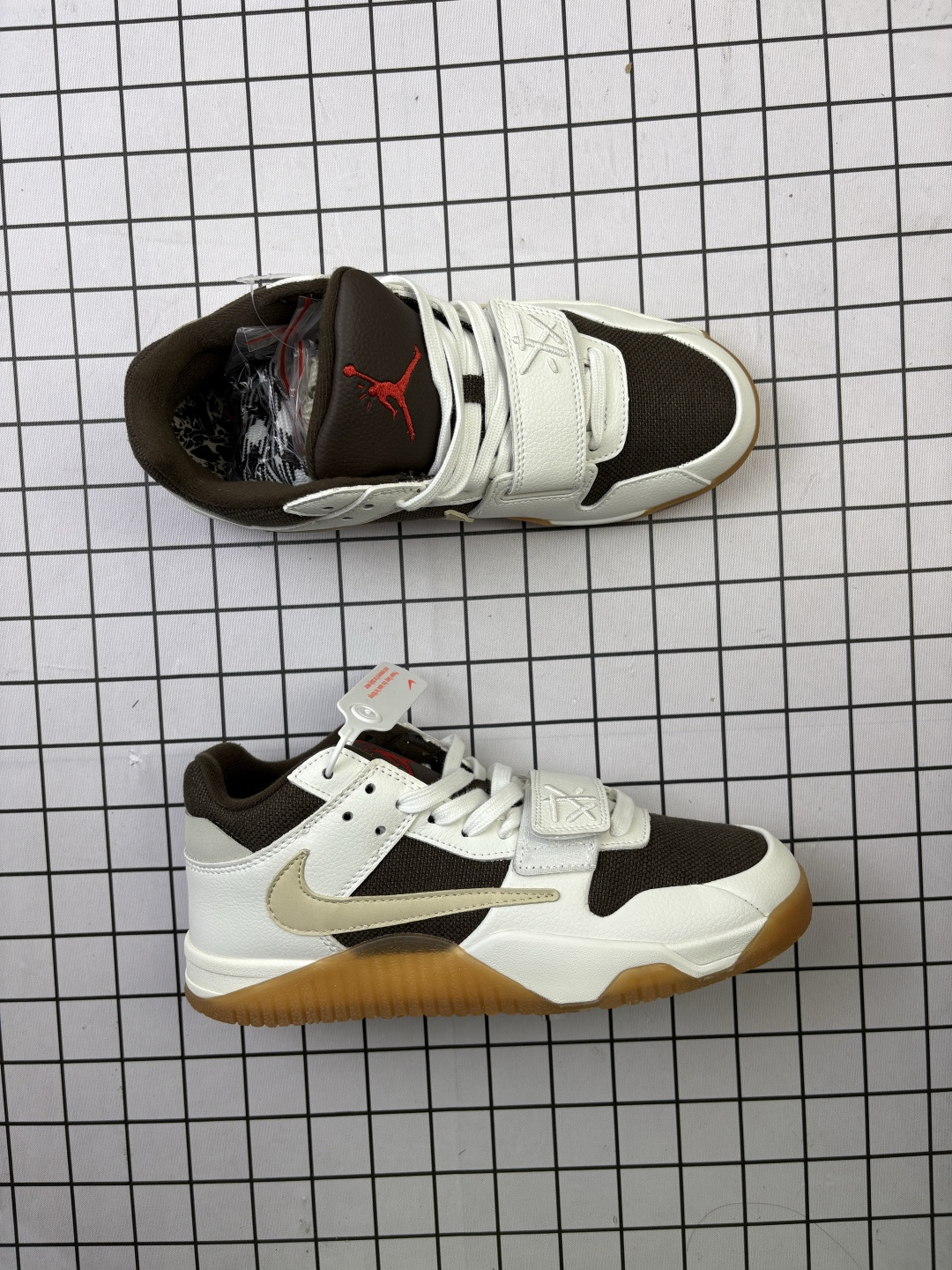 💰180 【公司级】Travis Scott 的 Jordan Jumpman Jack 训练鞋“Taupe Haze”亮相 Nike 耐克 新款JUMPMAN 乔丹缓震运动训练实战篮球球鞋篮球鞋。除了保留了标志性的"倒钩"元素外,还呼应了Cactus Jack音乐品牌的"JACK"爆裂纹鞋底。由于材质的不同,每个配色都拥有相应的设计方案,而其他设计语言都保持了一致。 货号:DR9317-100 尺码:36-46含半码 编码719