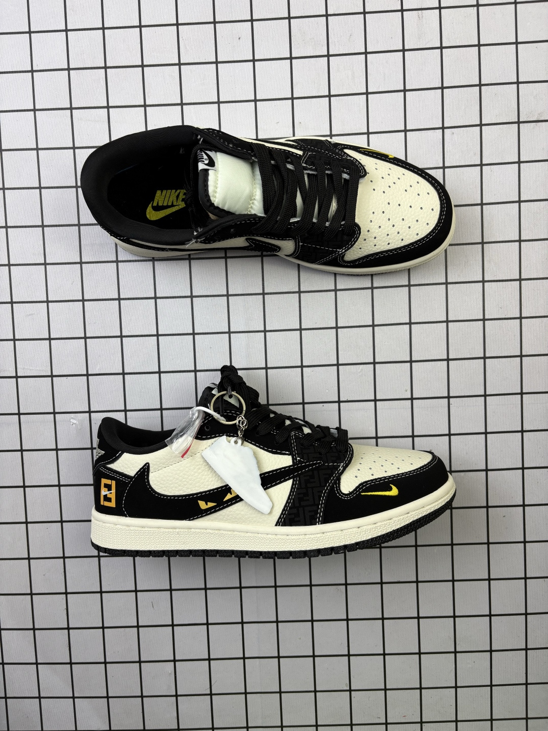 💰240 Jordan/乔丹 男女鞋真标半码制,采用软质荔枝纹牛剖革鞋面材质,缜密拉帮中底布,鞋垫嵌EVA缓震物料及背胶,内置气垫及耐磨橡胶大底❗️创意定制联名,意大利著名奢侈品牌·芬迪Fendi x Travis Scott x Nike Air Jordan 1 Low OG SP"Fendi"AJ1乔丹一代经典低帮文化百搭休闲运动篮球鞋“TS联名黑米白黄Fendi刺绣倒钩 DD7866-110 类型:男女鞋 码数:36 36.5 37 38 38.5 39 40 40.5 41 42 42.5 43 44 45 编码719