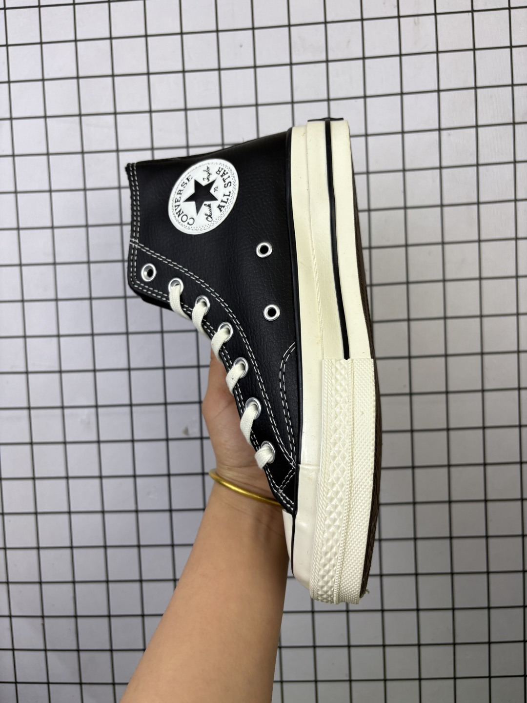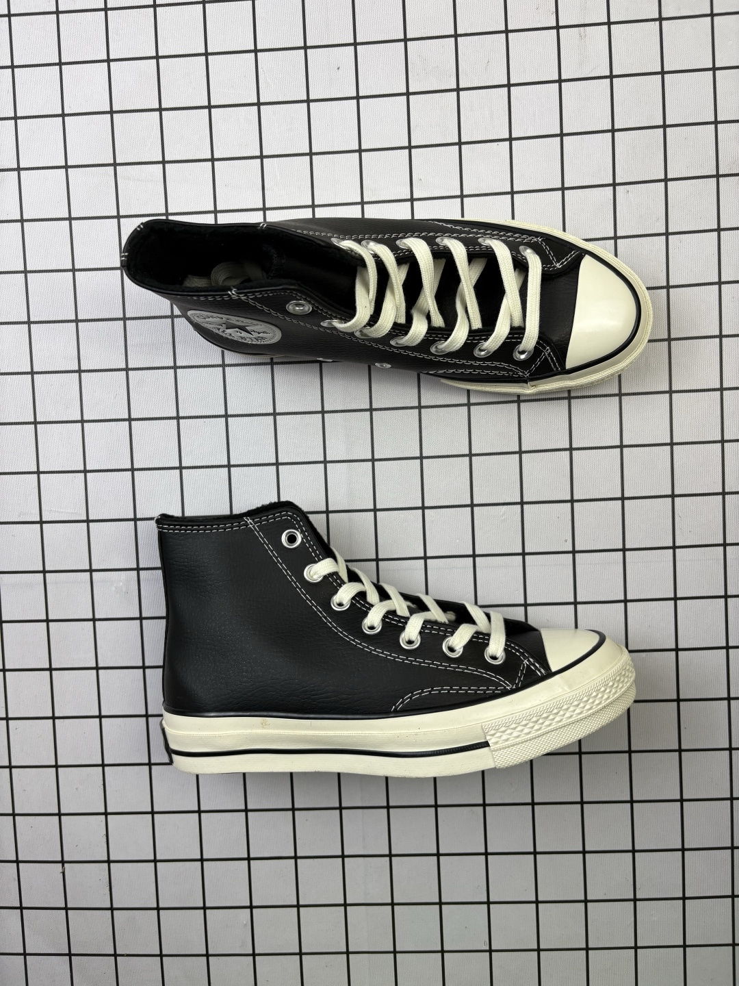 💰110 匡威1970S经典复古黑色高帮加绒皮‼️ CONVERSE匡威秋冬新款1970s经典黑色荔枝纹牛皮革加绒黑白皮面男女高帮复古休闲鞋A13863C 货号:黑色A13863C 编码648 35-44