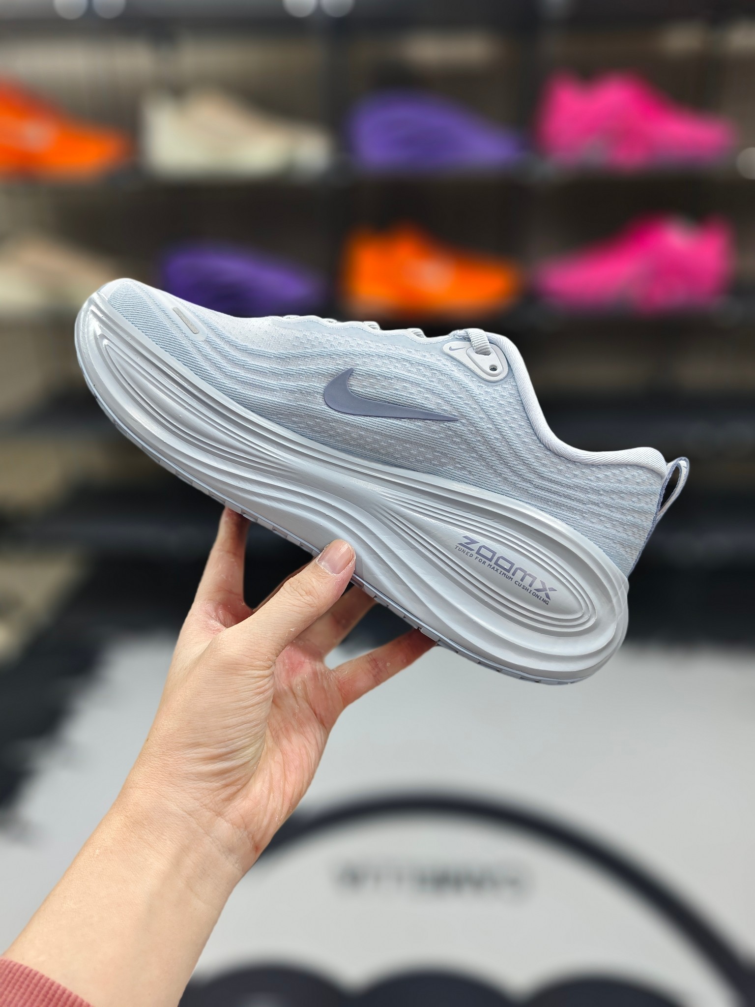 💰145 ☎️ 【D版纯原】 Nike Vomero Plus 时尚舒适防滑耐磨 低帮 ZOOMX 马拉松长跑短跑跑步鞋 男款 雾霾蓝 ▪️尺码:39-45(39 40 40.5 41 42 42.5 43 44 44.5 45) ▪️货号:HV8150-004 ▪️Nike Vomero Plus(超级迈柔)是耐克推出的主打极致缓震的跑步鞋。采用全掌ZoomX泡棉中底,厚度约5厘米,提供超强回弹与缓震性能,能量回馈出色,适合长距离跑步、恢复跑及综合训练。工程网面材质,轻盈透气,搭配波浪纹设计增强强度,包裹性良好,适合宽脚型。外底高磨损区域采用橡胶材质,抓地力强,弧形几何设计确保过渡流畅。ZoomX泡棉柔软Q弹,能有效吸收冲击力,长距离后半程仍保持稳定反馈,适合大体重跑者。兼顾缓震与轻盈,适合追求舒适与性能平衡的跑者。适合日常训练、长距离慢跑、恢复跑及部分速度课,尤其适合半马/全马选手。