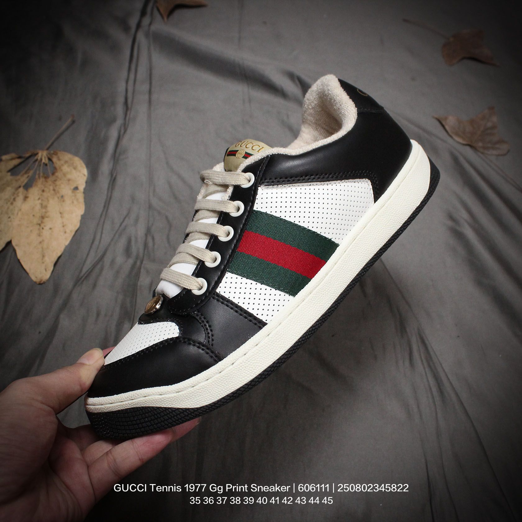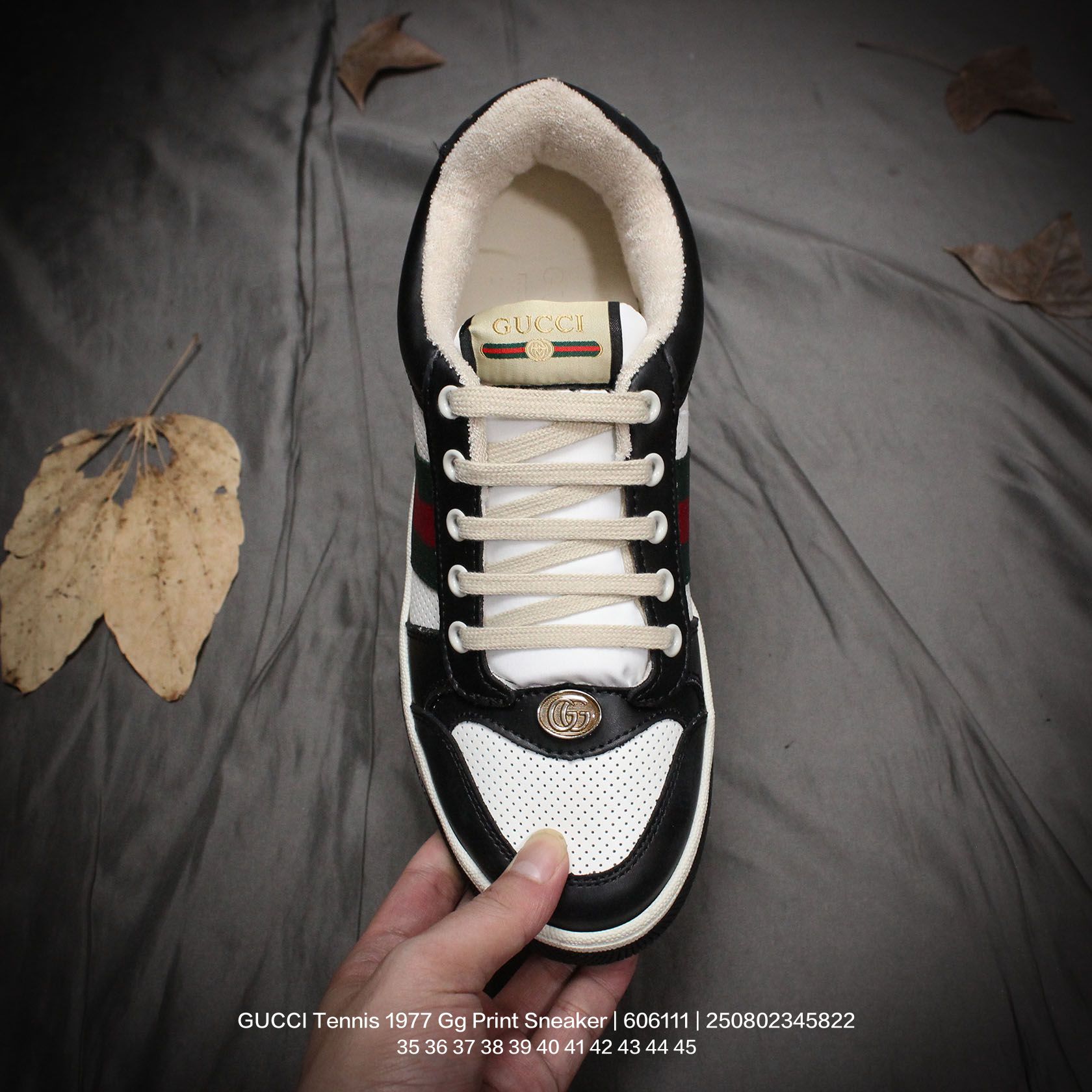 💰130 GUCCI/古驰 男女鞋采用拼接透气纯棉布鞋面材质,外置耐磨橡胶隔色大底❗倪妮.杨幂.鹿晗.刘宪华.丁禹兮群星ins及小红书穿搭爆款Disney x GUCCI Tennis 1977 Gg Print Sneaker帆布印花复古休闲运动板鞋 606111 类型:男女鞋 码数:35 36 37 38 39 40 41 42 43 44 45 编码:250802345.822