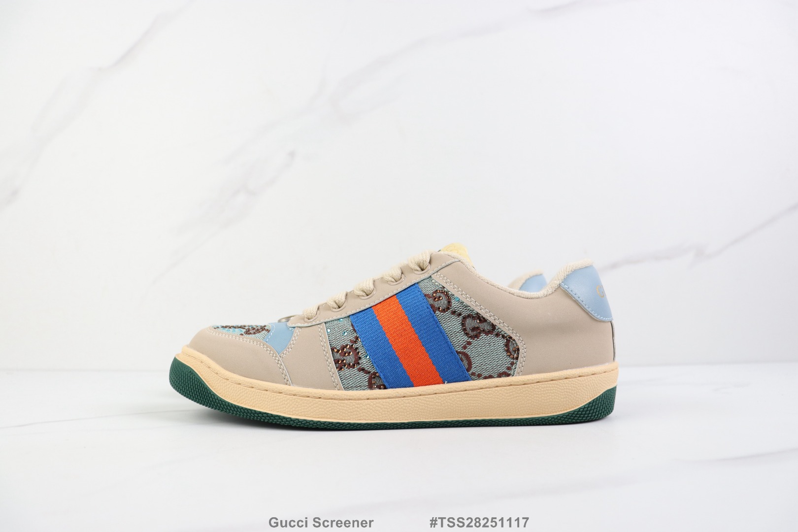 💰P140🔺Gucci Screener 古驰低帮经典复古舒适轻便休闲鞋 小蜜蜂 绿盒版本 牛皮材质 时尚舒适 Size:35-40码 #TSS28251117