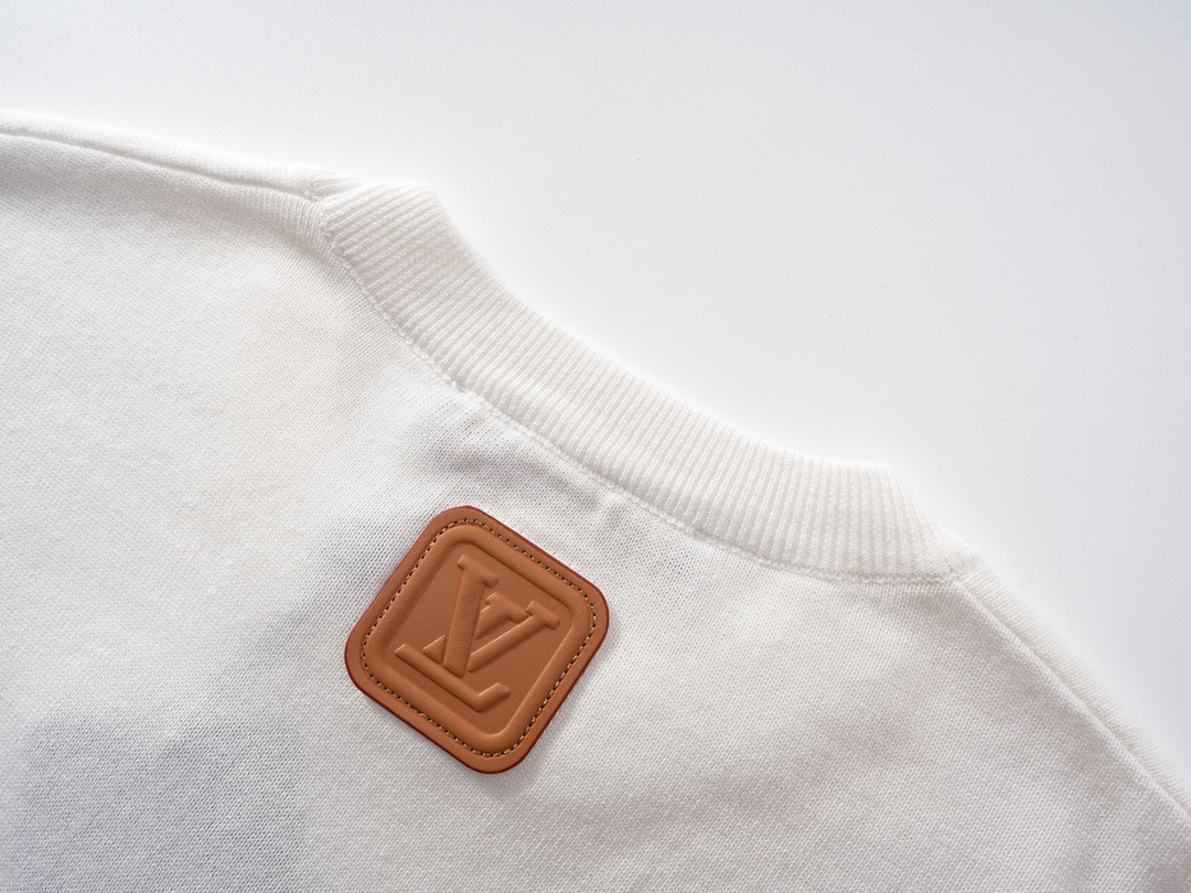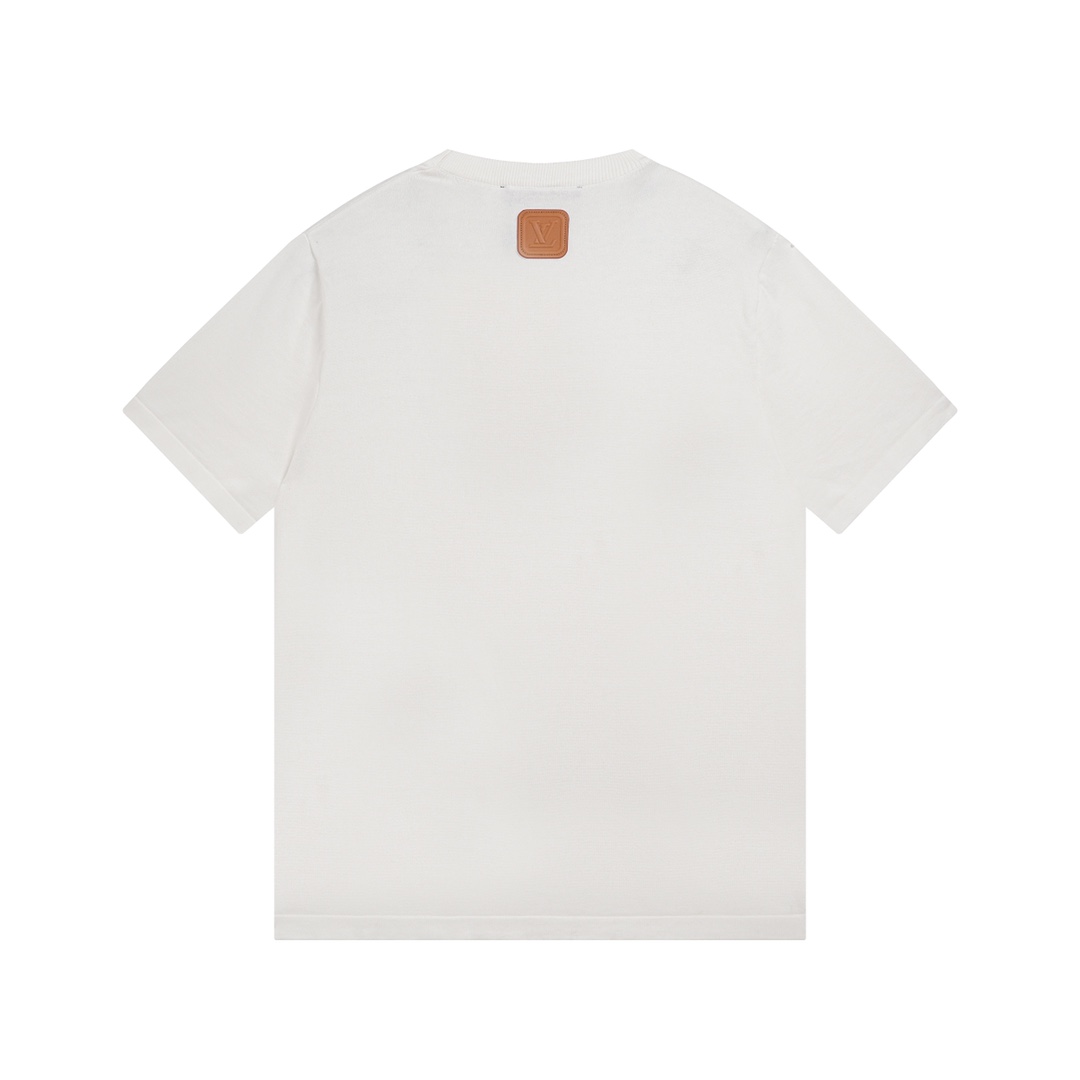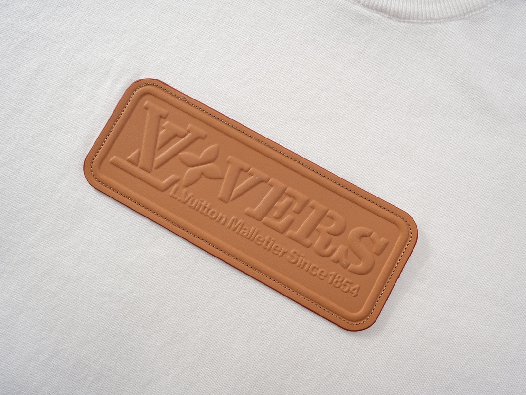 P150 1V2025SS早春新款VVN 贴饰棉质短袖圆领T恤。 本款短袖圆领衫取材柔软棉质针织,为正面VVN 皮革贴饰压印 1V Vers标识,娓娓道出品牌皮具系列的悠久传承。后部小号1V皮革贴饰完善细节。 尺码XS-L
