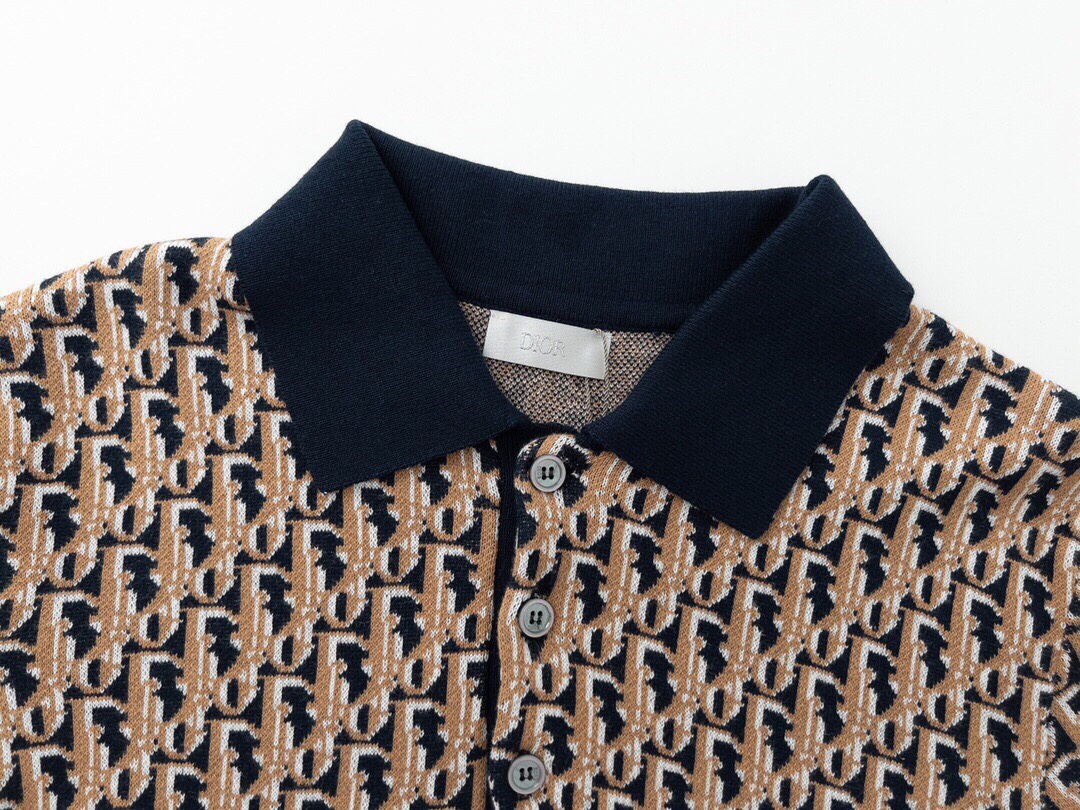 P165 . 全年有货不下架 正确版本 Dior 提花针织 Polo 衫 织片采用德国进口施托尔毛织机制成 通体标志性的 Oblique 印花 直筒剪裁 定制同面料底色蓝色一致的扁机领 开模定制刻字Logo珍珠母贝纽扣 全网独家版本 定制官网一致洗水麦 全套包装辅料 码数XS-L