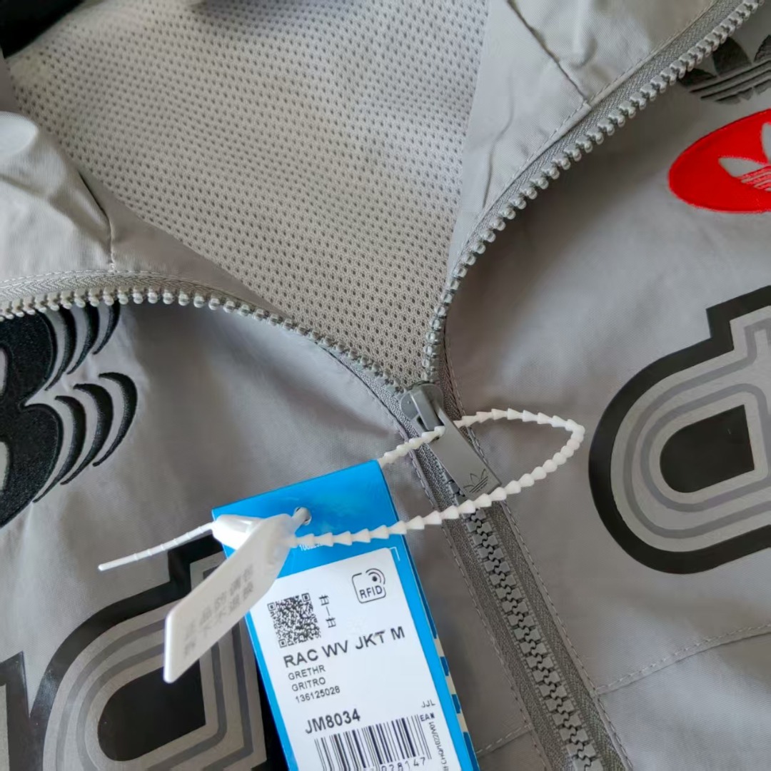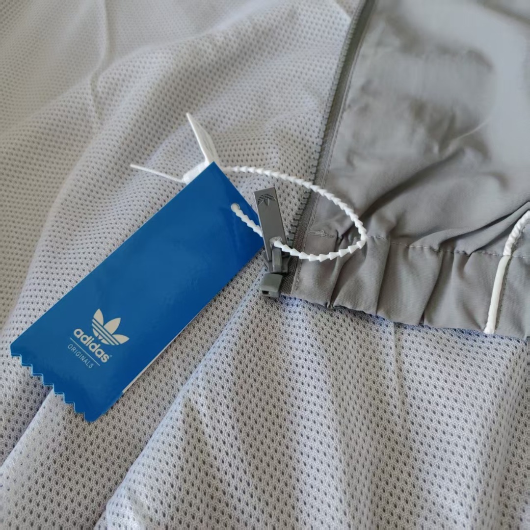 本地自取 💰200 实拍细节图+尺码表 Adidas/阿迪达斯 立领运动宽松长袖夹克 Flt check |春季美式复古穿搭 小红书、微博、得物 众多博主种草 三叶草机车风夹克外套 外套平纹梭织面料、轻质耐磨透气性好 前身和袖子装饰反光条、未来感满满 机车风格的印花图案复古帅气极具个性 官网原版购入!拆解原版打色定做!原版纯棉面料!换原度百分99以上! ▪️五金辅料 原版拆解 开模定做原版吊牌、吊粒、水洗、贴纸、还原所有原版细节!真正高品! 颜色:黑色 灰色FS002@