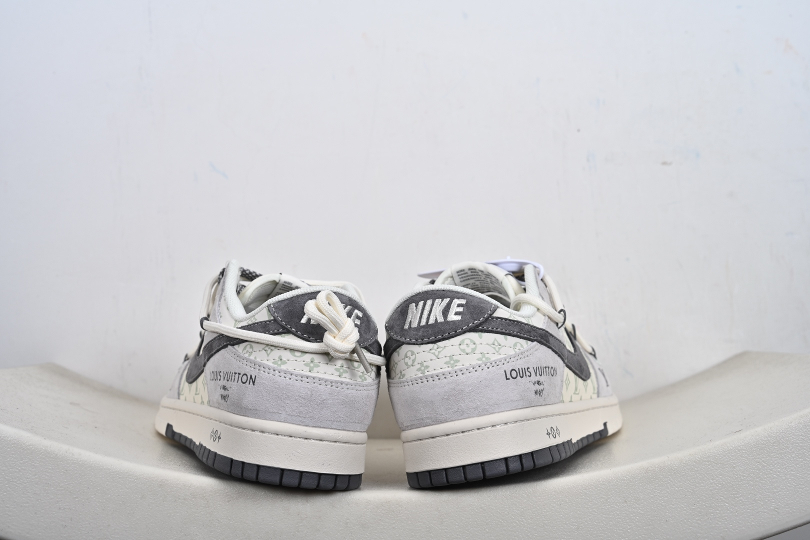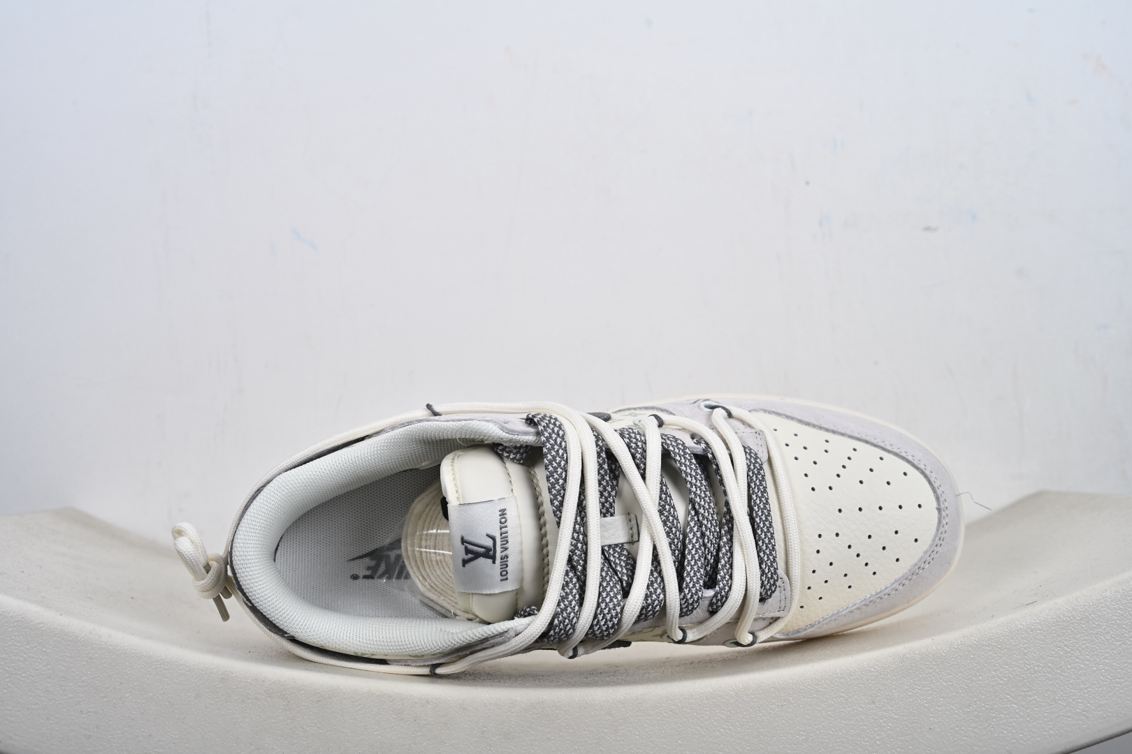 本地💰270支持放店 Nike Dunk Low x LV 联名款|雾霾灰调的奢潮新标杆 这双Nike Dunk Low CX5050-Y45与LV的联名鞋款,堪称街头潮流与高端奢品融合的典范之作,从材质选择到细节设计,都将奢潮美学展现得淋漓尽致。 鞋面以雾霾灰麂皮为基底,搭配浅灰调的LV经典老花印花皮革拼接,低饱和的灰系配色营造出清冷高级的视觉氛围,麂皮的细腻绒面与印花皮革的精致纹理形成鲜明质感对比,触手可及的高端材质,让每一次上脚都能感受到奢品工艺的魅力。鞋身侧方的Nike Swoosh采用深灰磨砂皮质打造,与LV字母标识、老花图案相互呼应,鞋舌与鞋跟处的细节标识更是将联名身份拉满,每一处设计都暗藏巧思。延续Dunk Low的经典鞋型架构,鞋身线条流畅利落,中底采用轻量发泡材质打造,兼顾了复古造型与脚感舒适度,橡胶外底的人字形纹路提供了出色的防滑耐磨性。无论是搭配街头风的工装裤、休闲牛仔,还是简约的运动套装,这双鞋都能轻松成为造型的视觉焦点,是潮人鞋柜中极具收藏价值的奢潮单品,更是彰显个性与品味的不二之选 尺码:36 36.5 37.5 38 38.5 39 40 40.5 41 42 42.5 43 44 44.5 45-G1-F4