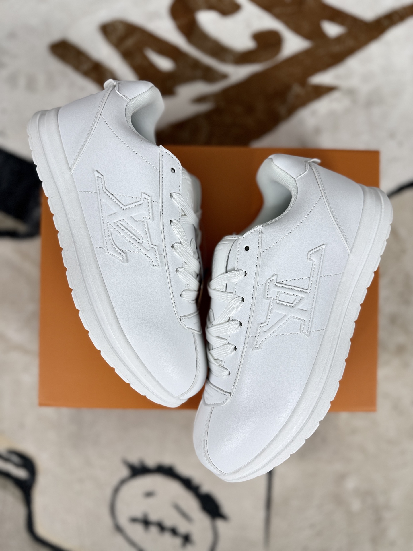 本地💰180 ▪️YQ LOUIS VUITTON x Nigo 联名款 Buttersoft FW25 牛皮革羊皮革 圆头系带 低帮 生活休闲鞋 男女同款 白色 ▪️尺码:36-45(36 37 38 39 40 41 42 43 44 45) ▪️货号:1AIKDD ▪️LOUIS VUITTON x Nigo 联名款Buttersoft FW25 是LV旗下的一款生活休闲鞋。该鞋款灵感源自2000年代初的滑板鞋廓形与Chunky风潮,融合了菲董与Nigo对街头潮流黄金时期的回忆,尤其是对菲董早期与Nigo共同创立的Billionaire Boys Club旗下滑板品牌Icecream的经典鞋款Board Flip的致敬。鞋型轮廓借鉴了1972年Nike Cortez(阿甘鞋),但通过加厚、加宽设计,呈现出更具现代感的“面包鞋”形态,兼具复古与时尚元素。鞋面采用奢华羊皮与牛皮皮革拼接,质感柔软细腻,触感如奶油般温润,体现了LV一贯的精湛工艺。内里采用进口透气网布,兼顾舒适性与透气性;鞋底为原版开模的防滑TPU材质,厚度约3cm,提供良好的支撑与缓震效果。鞋舌印有菲董的动漫头像logo,后跟处隐藏皮革饰边,掀开后可见“小龙虾”压印彩蛋,致敬菲董与Nigo的友谊故事。鞋带前端和后跟装饰有皮革饰边,增添细节质感;部分版本内置增高鞋垫,可增加约4cm高度,提升穿着的舒适度与视觉效果。这款鞋款凭借其独特的设计语言、高品质材质与丰富的文化内涵,成为2025年秋冬时尚界的焦点之作,既适合日常休闲穿搭,也适合搭配正装或潮流服饰,展现出多元化的风格魅力。