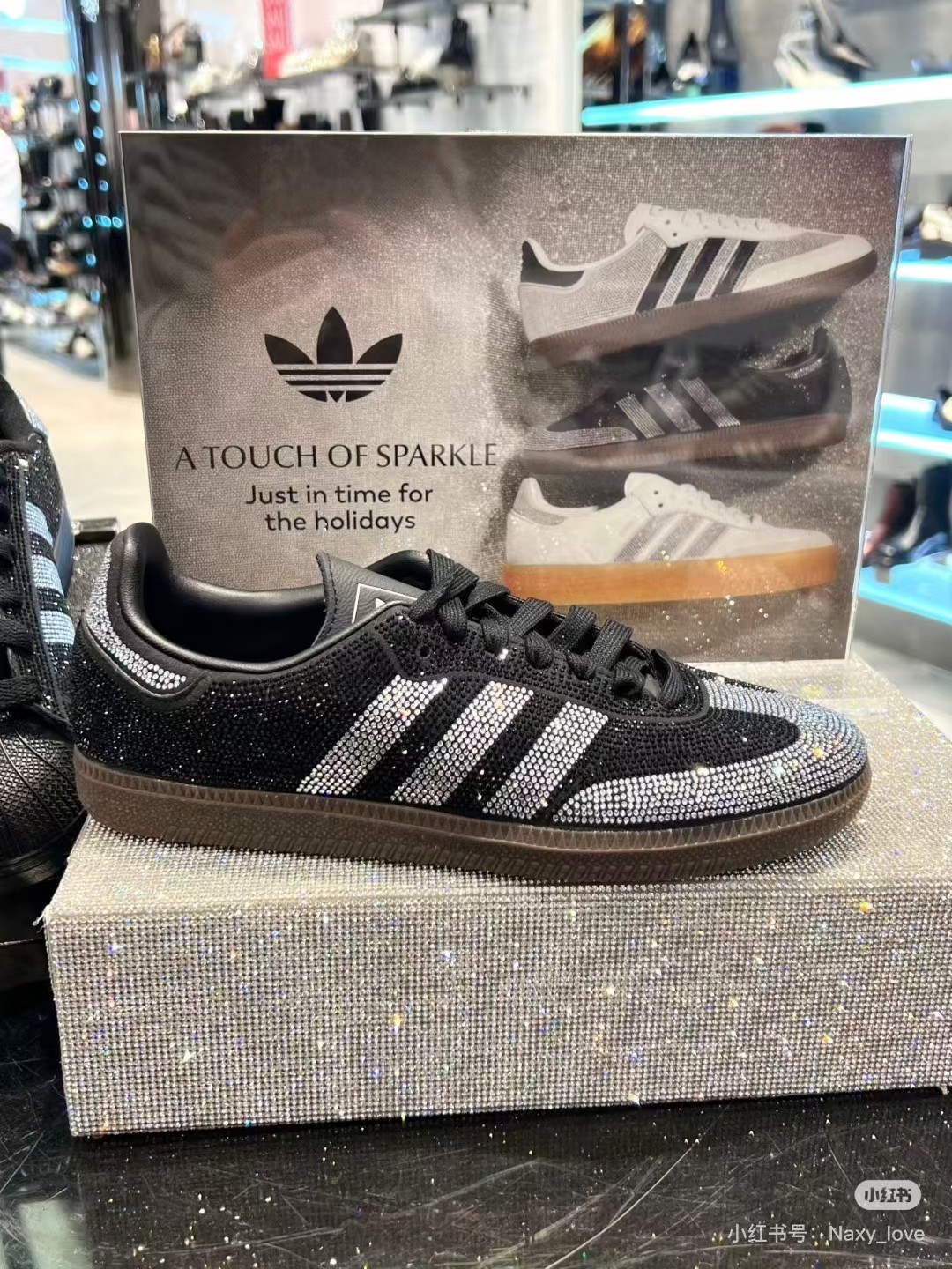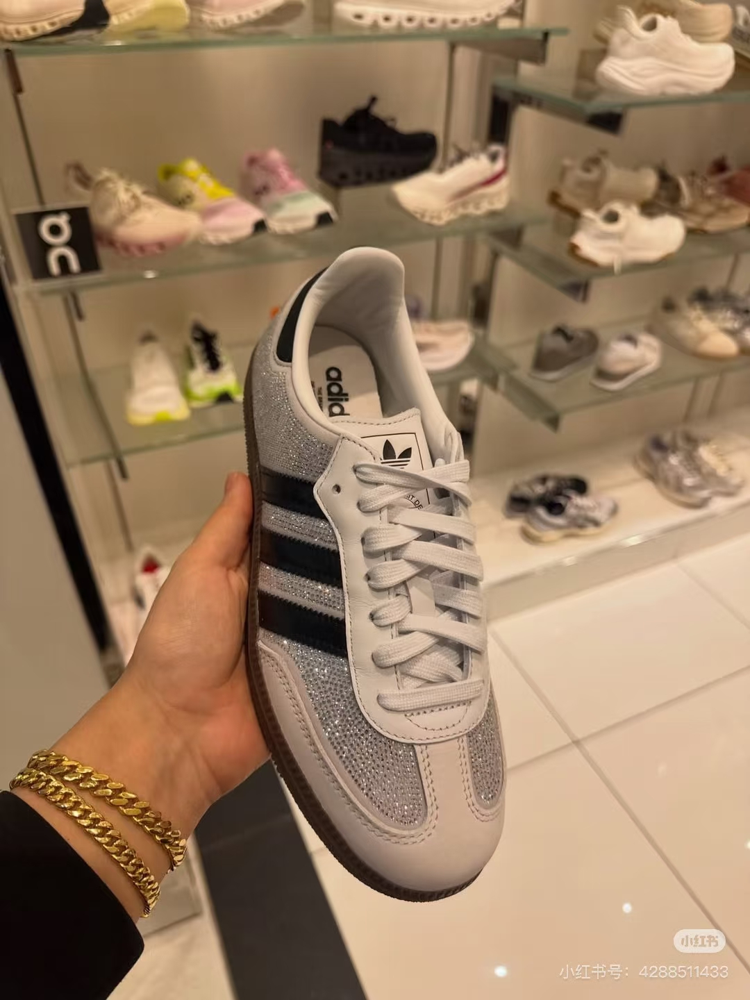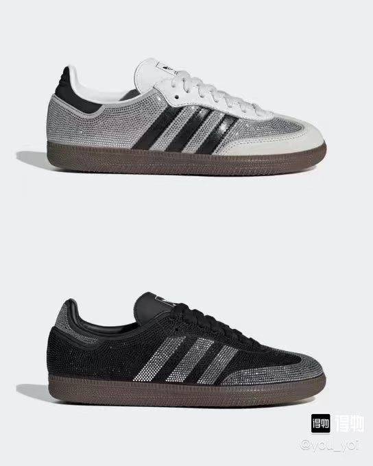 阿迪达斯预计将在假日季正式发售“水晶白/水晶白/金属银”配色的Samba OG复古款,全新白色版本的水钻Samba设计更为内敛:鞋身基底铺满水钻,但鞋头、三条纹标志、后跟与鞋眼片等部位仍沿用Samba标志性的麂皮与皮革材质。这种混合材质的运用为原本炫目的设计注入了平衡感。
