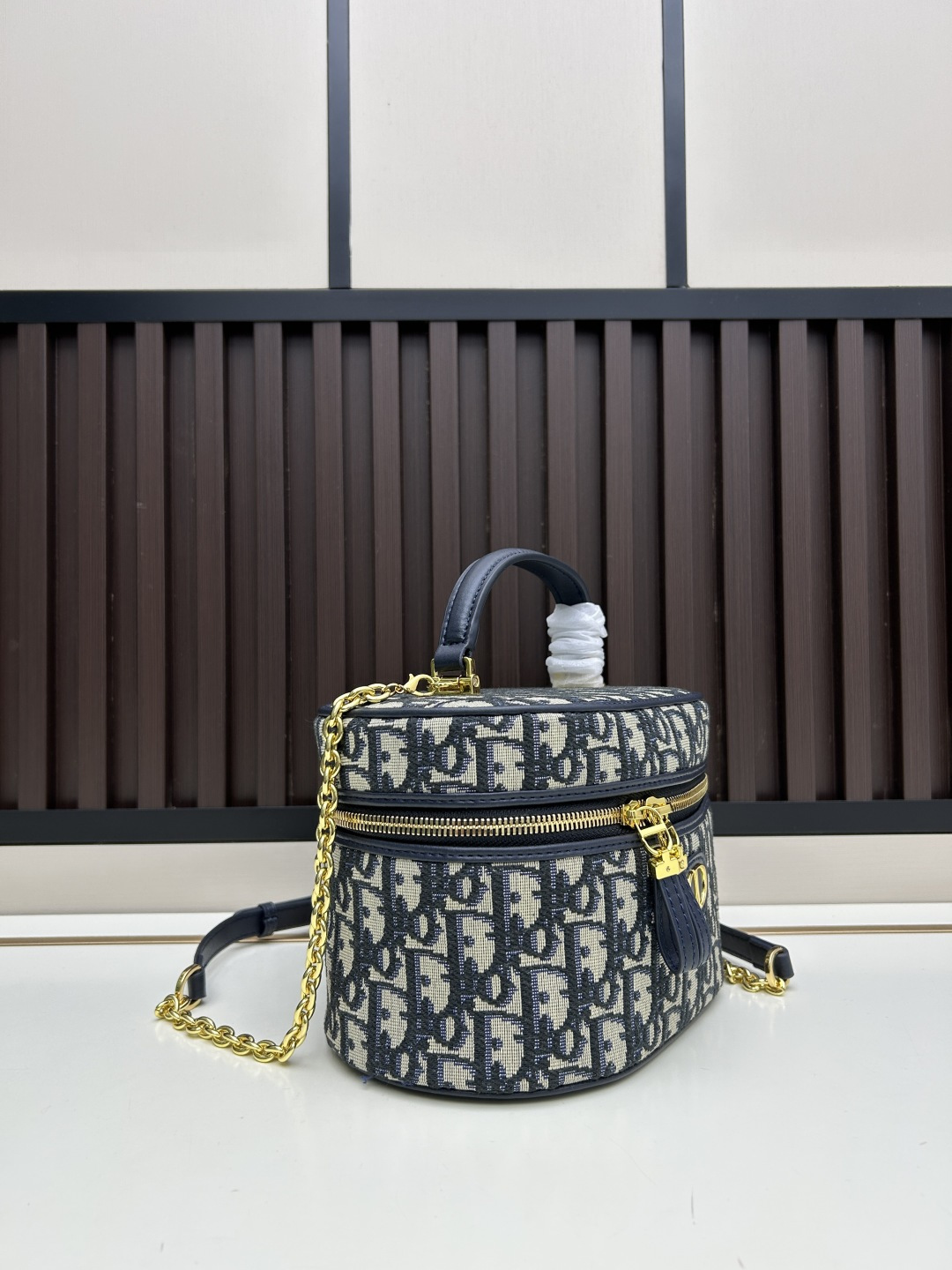 大号批💰470 dior 30 montaigne 迷你vanity 手袋「黑色」 这款 30 montaigne 迷你vanity手袋设计精巧,兼具实用功能与高雅气质,为该系列提升格调。采用蓝色oblique 印花面料精心制作,正面饰以cd 标志提升格调。可收纳各种日常用品,设有一个内部口袋和镜子,更显精致。可通过手柄手提,搭配可调节肩带,以金色饰面金属和蓝色珐琅链环相间交错打造,饰以皮革镶片,可肩背或斜挎。正面饰以 cd 标志 拉链开合搭配 cd拉链头顶部手柄 1个隔层搭配镜子内部贴袋 可调节、可拆卸的皮革肩带 型号:7099 大尺寸:20.5x12.8x13.5厘米(长x高x宽) 小尺寸:16.5x8x9.5厘米(长x高x宽)可收纳1部手机、1个卡夹和唇膏