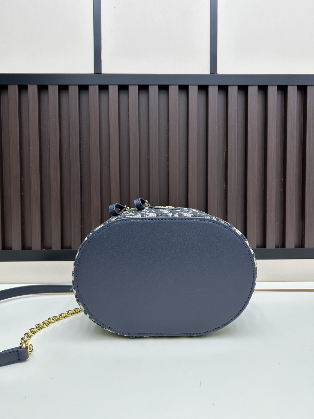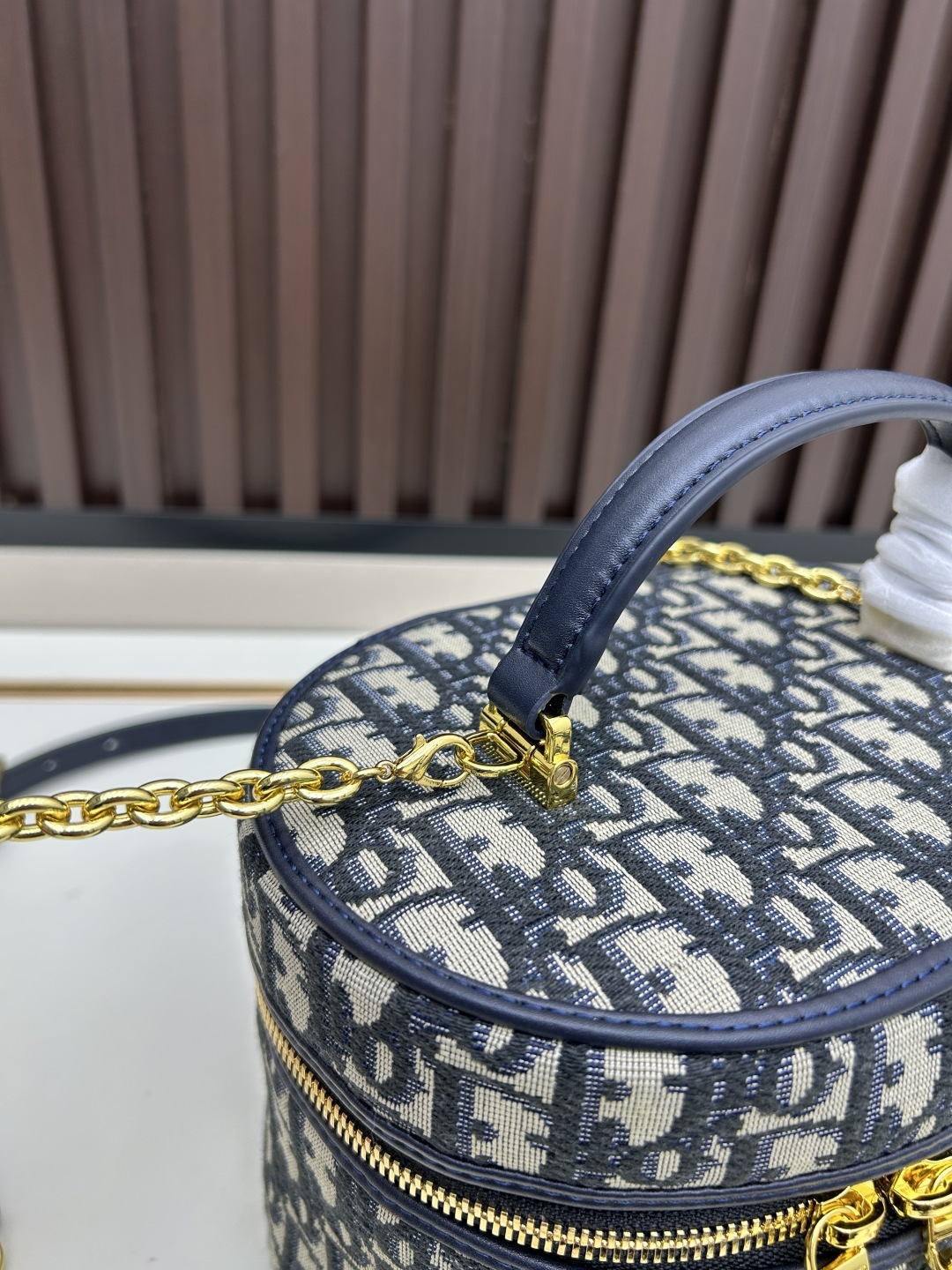 这款 30 montaigne 迷你vanity手袋设计精巧,兼具实用功能与高雅气质,为该系列提升格调。采用蓝色oblique 印花面料精心制作,正面饰以cd 标志提升格调。可收纳各种日常用品,设有一个内部口袋和镜子,更显精致。可通过手柄手提,搭配可调节肩带,以金色饰面金属和蓝色珐琅链环相间交错打造,饰以皮革镶片,可肩背或斜挎。正面饰以 cd 标志