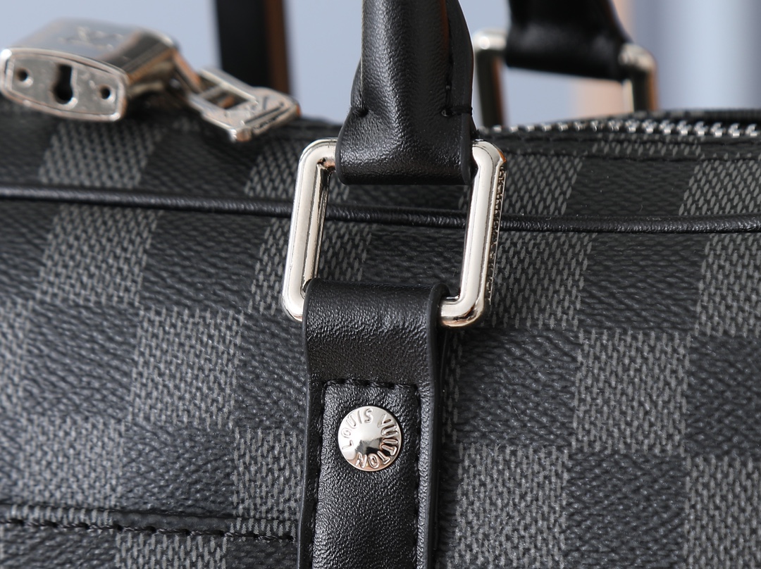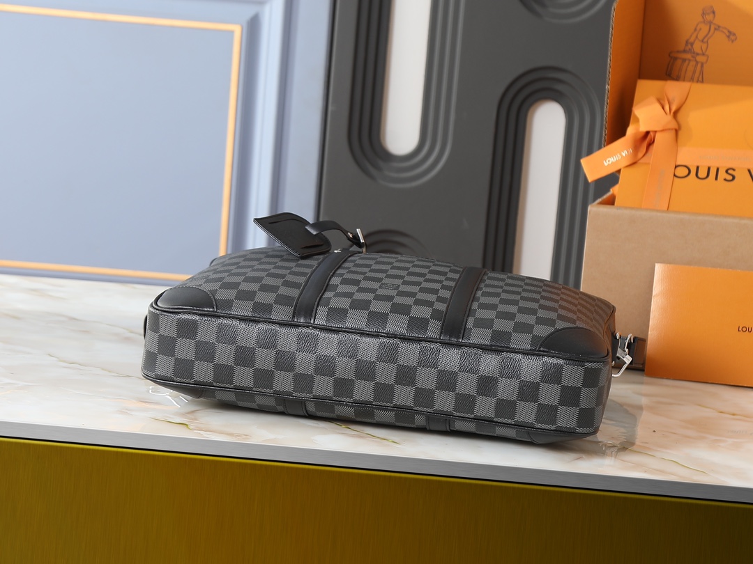 💰340💰升级原版 M46457-40445-40444 Voyage 小号公文包取材 Damier Infini 牛皮革,以棋盘格压纹传递儒雅风范。皮革裁出手柄和可拆卸名牌,可拆卸并调节的肩带完善功能设计。36.5 x 27.5 x 6 厘米