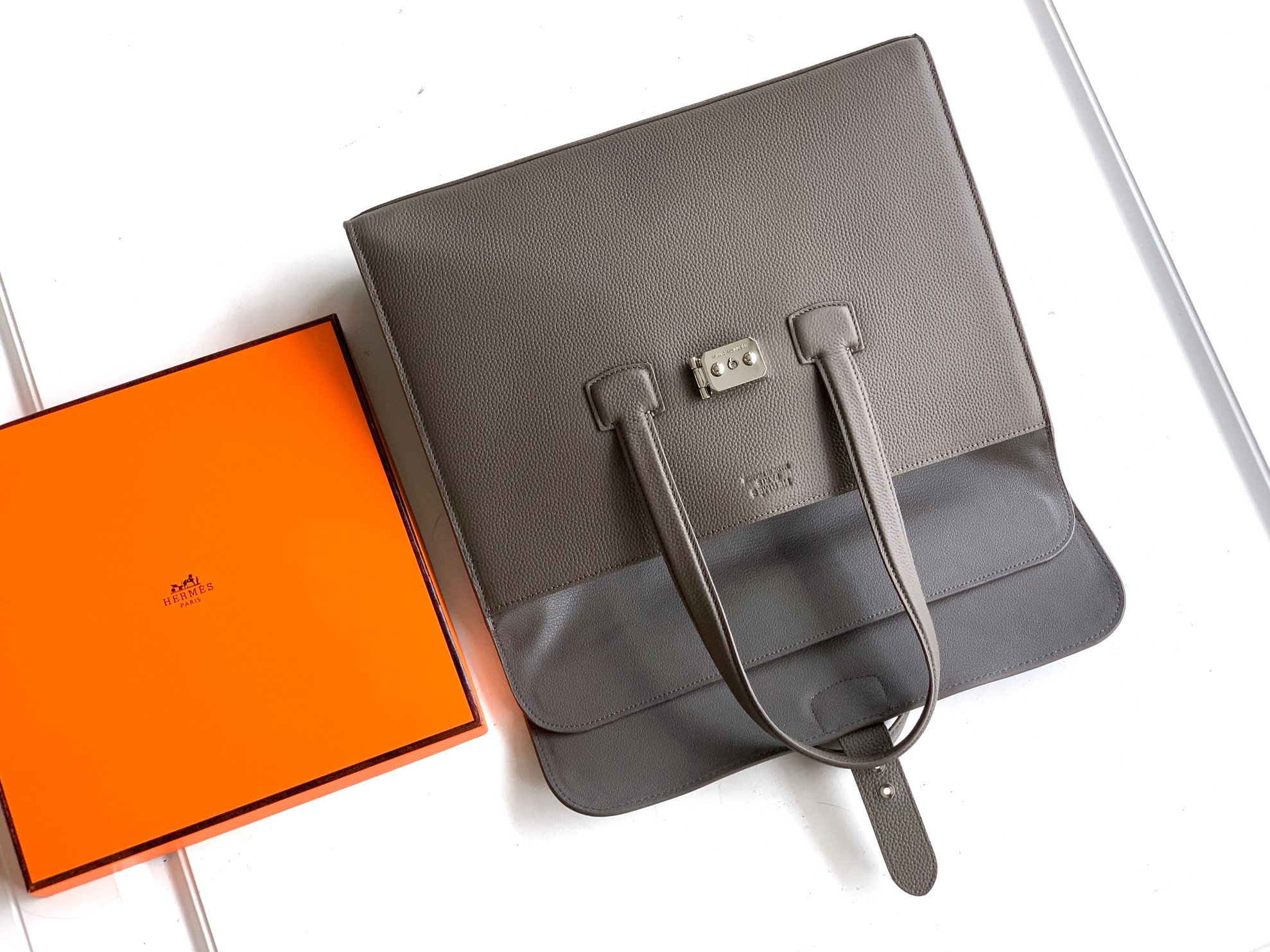💰720 。 新款公文包型号:6097-1#大象灰Elephant.Grey顶级原单货爱玛意大利专用头层牛皮,手感超级柔软细腻,质感高端有档次,专柜同款,绝对高端货。高纤维裡布,专柜五金配件,质量超赞。尺寸:38x30x8------