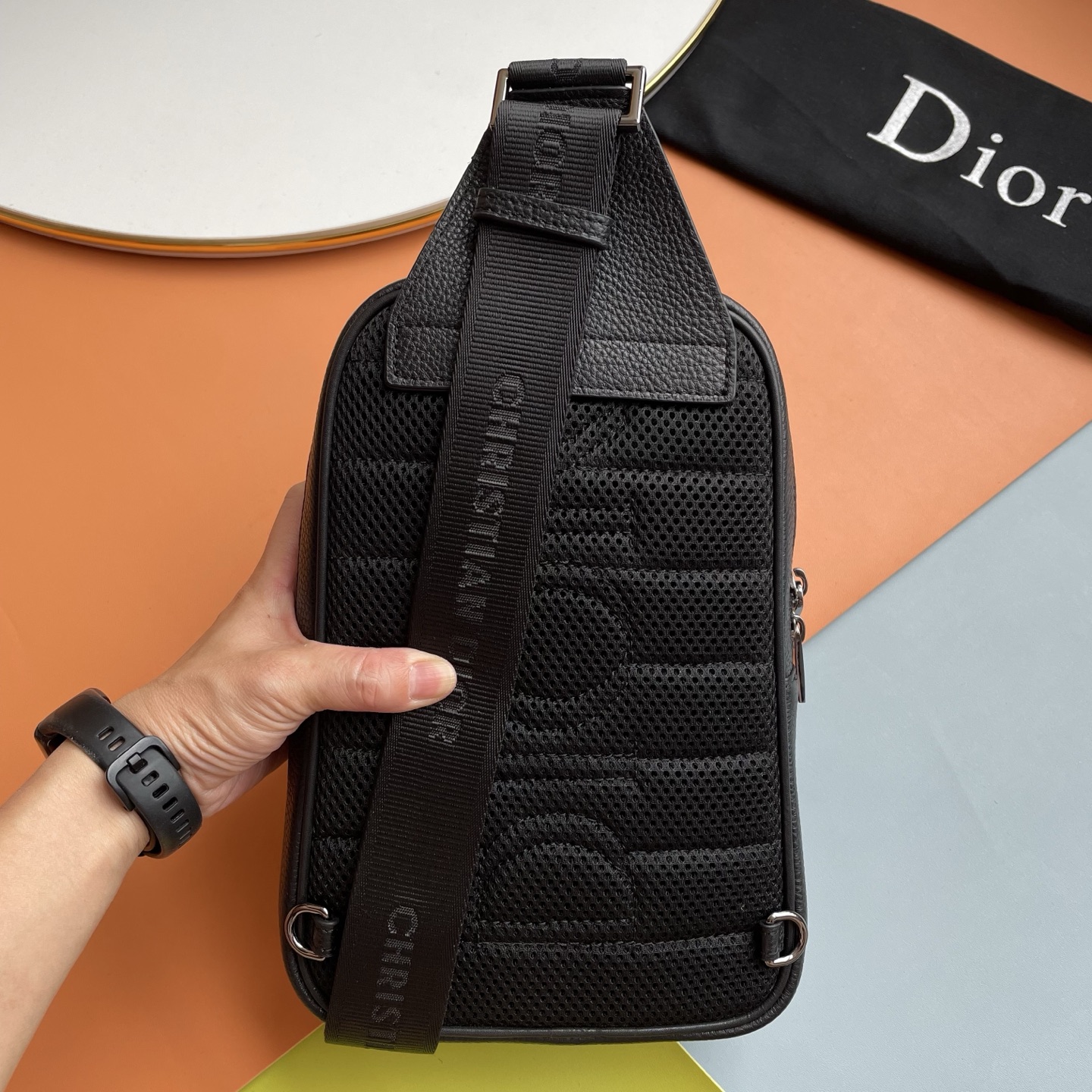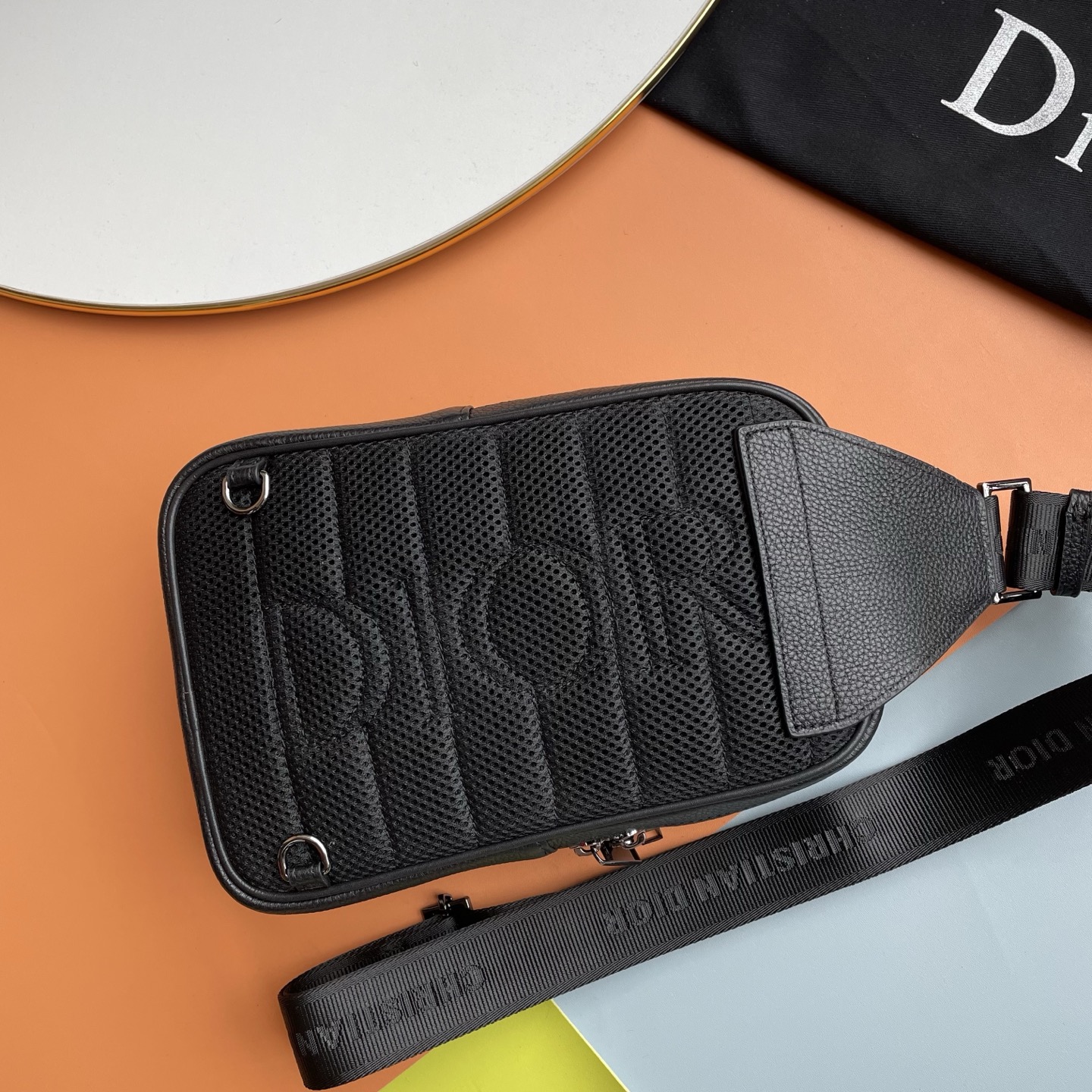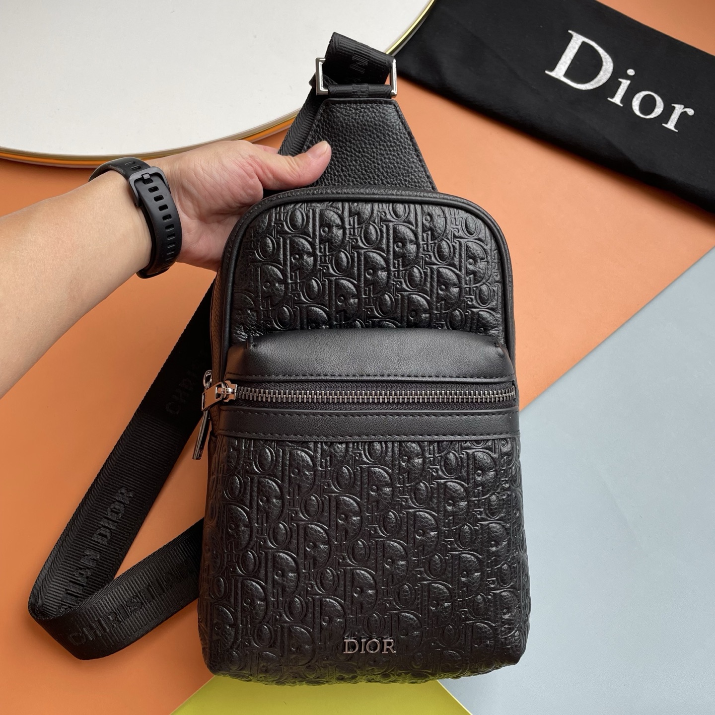 批430,爆款来袭,这款Rider 2.0腰包是一款实用而现代的款式。采用进口原版牛压纹精心制作,饰以同色调粒面牛皮革细节和Dior标志。主隔层和前袋均配有拉链,方便收纳所有必需品,可调节肩带。 正面饰以Dior标志,搭配钌色调饰面内侧饰有压花Dior标志 型号: 2065 尺寸:17x26x8cm