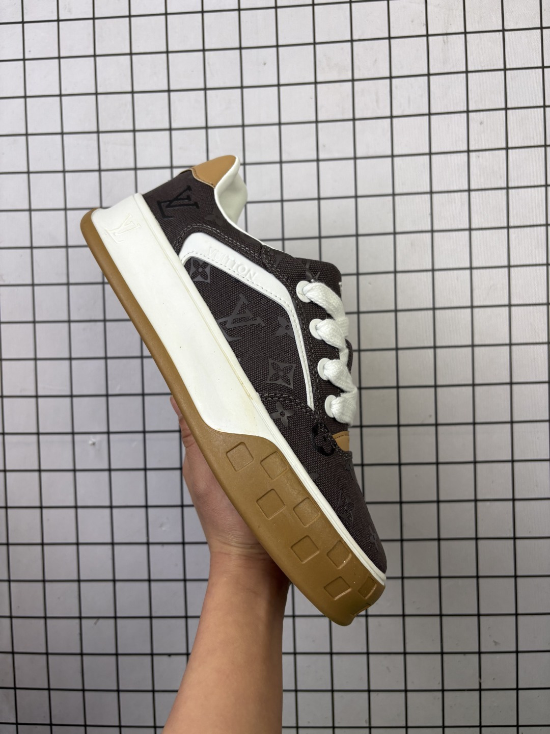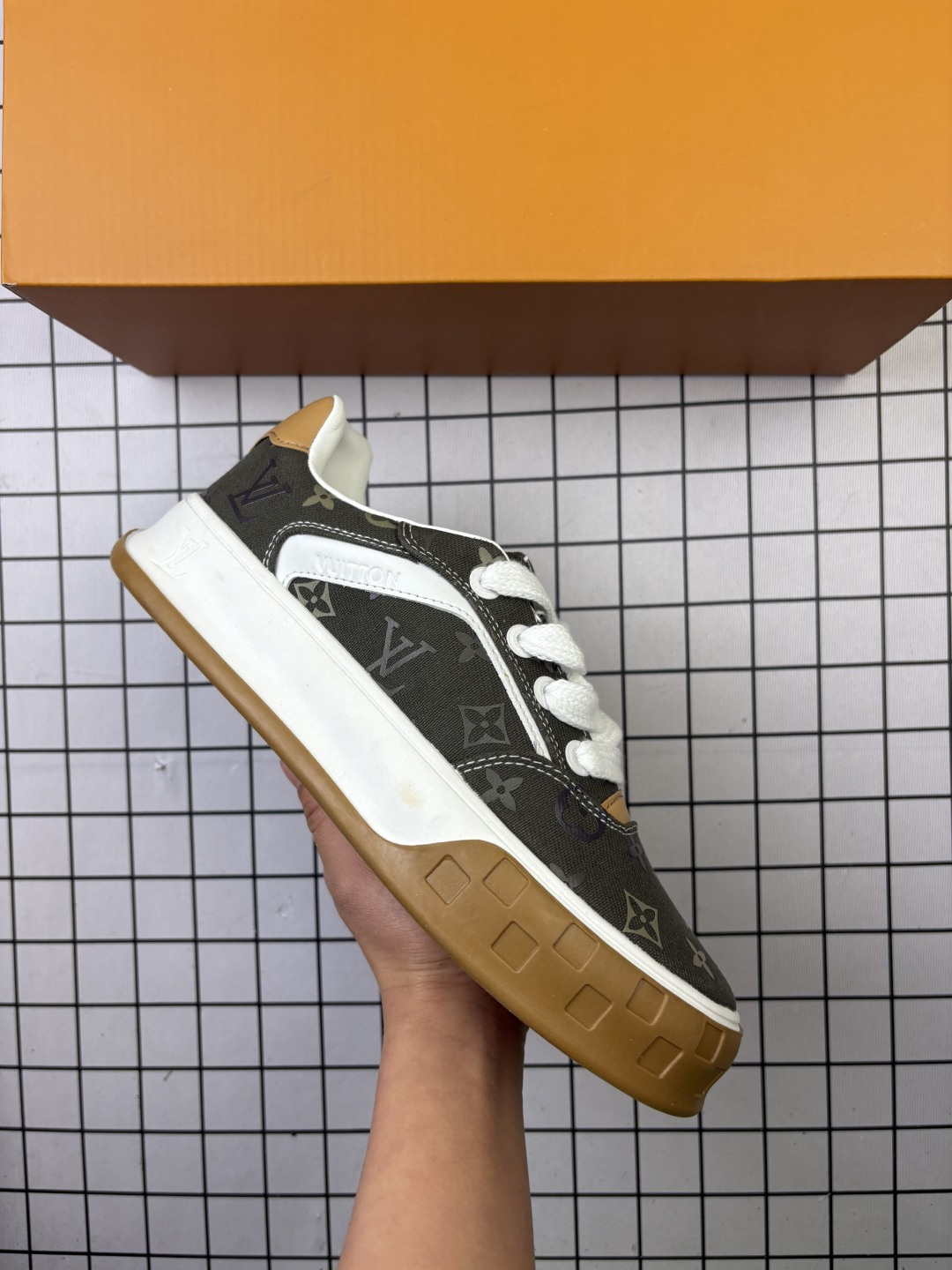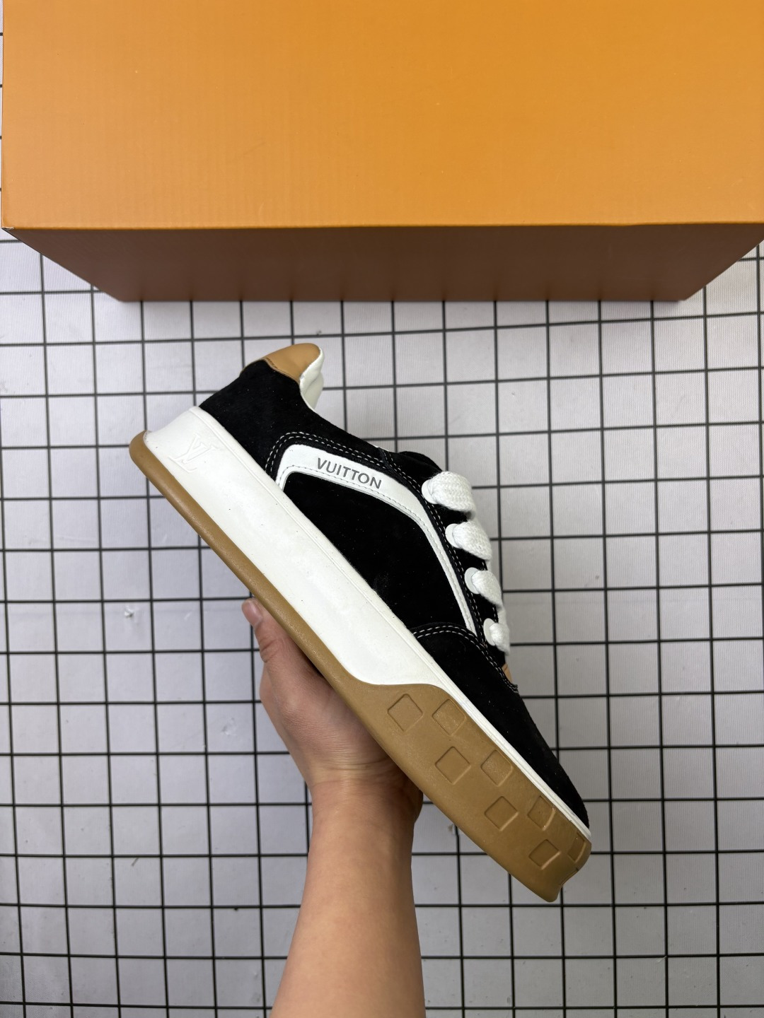 🈴💰150 奢侈品牌LV路易威登LOUIS VUITTON Tilted Suede Low Sneakers 倾斜系列低帮复古休闲运动文化百搭板鞋“麂皮土黄白生胶底” 尺码:40 41 42 43 44 45 编码新Y 40-45