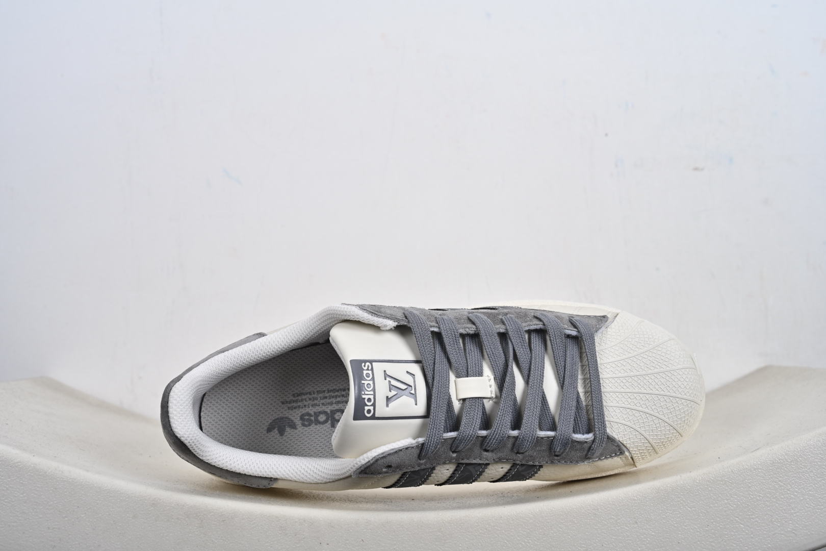 AD Originals Superstar x Louis Vuitton 采用全新头层拼接皮革材质后跟采用特色3D立体印字 渠道正品订单 诠释市场最高工艺水平全鞋进口头层皮料打造区别市面普通真标版本,进出专柜无压力