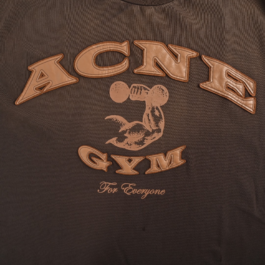 本地自取💰140 ACNE STUDIOS GYM做旧徽标短袖T恤 定制双股绵柔平纹织物,进口机贴布绣工艺,采用胶浆印花,印花经过三次菲林网板修改,使用胶浆液体涂料在织物上打印图案,烘烤织物以固定印刷图案,渐变做旧喷马骝工艺,通过在织物表面喷洒不同颜色的染料,实现衣物在不同光线下呈现出丰富的色彩变化,增加视觉层次感,面料都经过孝洗,手感质感更佳,不易变形,不易缩水,不易褪色,定制商标,宽松版型 Size:S-XL