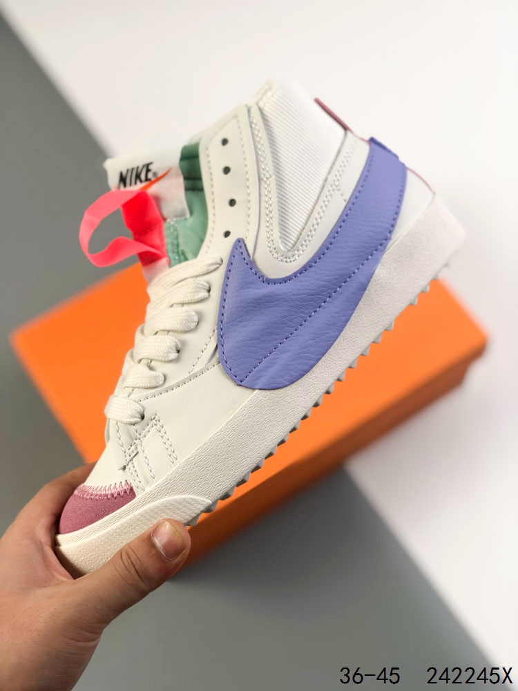 💰130 耐克 NIKE Blazer mid vintage开拓者 高帮男女子运动板鞋 厚底增高休闲鞋。采用轻盈利落设计,焕新演绎经典鞋款。该鞋款带来舒适足底体验,结合鞋侧壁加固设计,缔造舒适感受。皮革鞋面适合日常穿着,柔软非凡,硫化结构将外底与鞋面巧妙熔接,打造出众柔韧灵活性和复古风格。硬质橡胶外底融入人字形底纹,铸就非凡抓地力,彰显经典风范。加垫鞋口,一体式鞋头护条。 尺码:如图 ID:242245X
