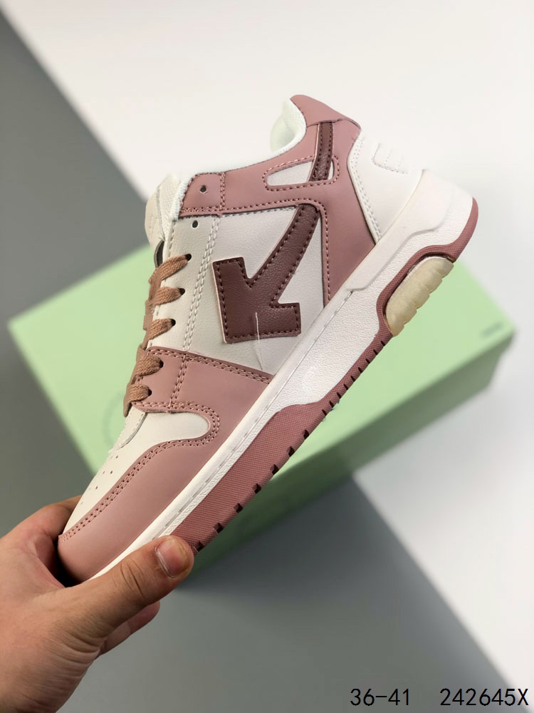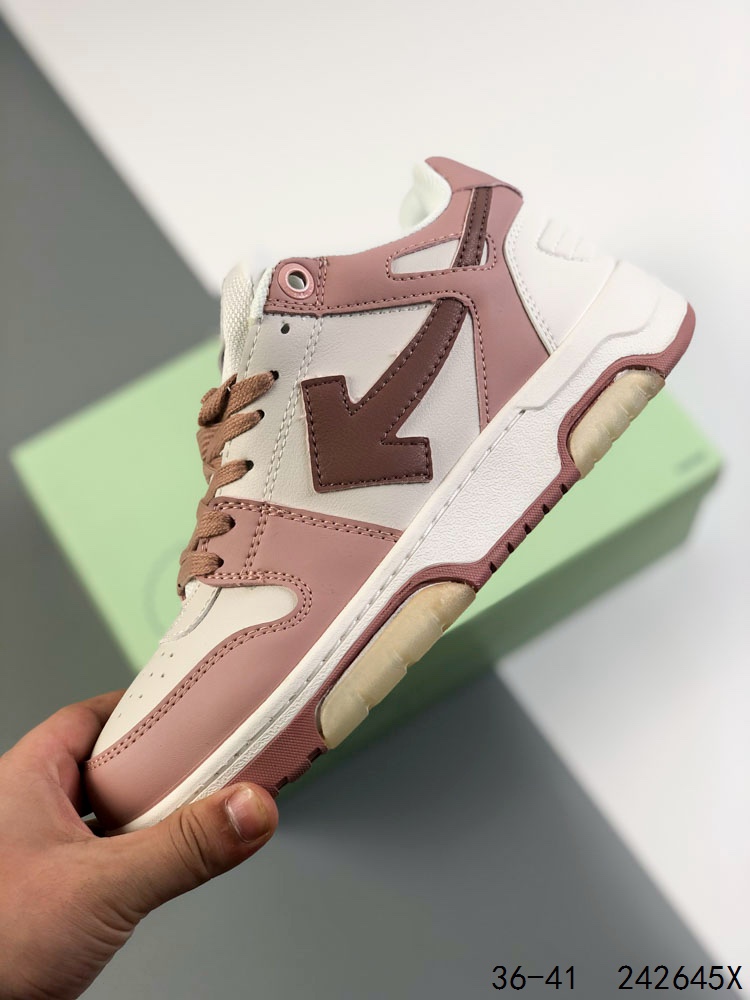 💰150 ✅当红美潮,设计师独立品牌Off-White™ c/o Virgil Abloh Out Of Office Low-top Leather OW联名 箭头OFF-White 重磅联名 Sneakers"OOO"复古百搭休闲运动板鞋 原楦型开发纸版#采用粒面头层小牛皮饰片#超软PU鞋垫+拼接去臭网布材质#全新开发橡胶耐磨鞋底低帮"Out of office"运动鞋,侧面为对角箭头图案,鞋跟处为Off-White™徽标,橡胶鞋底,白色系带鞋绳。Virgil Abloh——Off-White品牌创始人兼创意总监希望呈现一款既兼具二十世纪80年代与90年代的美感、又适宜日常穿着的网球鞋。于是“OUT OF OFFICE”运动鞋诞生了:低帮线条廓形,将街头的闲适、篮球的轻捷与跑步的力量绝妙融合。这款运动鞋拥有色彩鲜明的外底,半透明凝胶镶边,经典镂空鞋头与鞋面设计,螺纹针织鞋跟饰有徽标图案 尺码:如图 ID:242645X