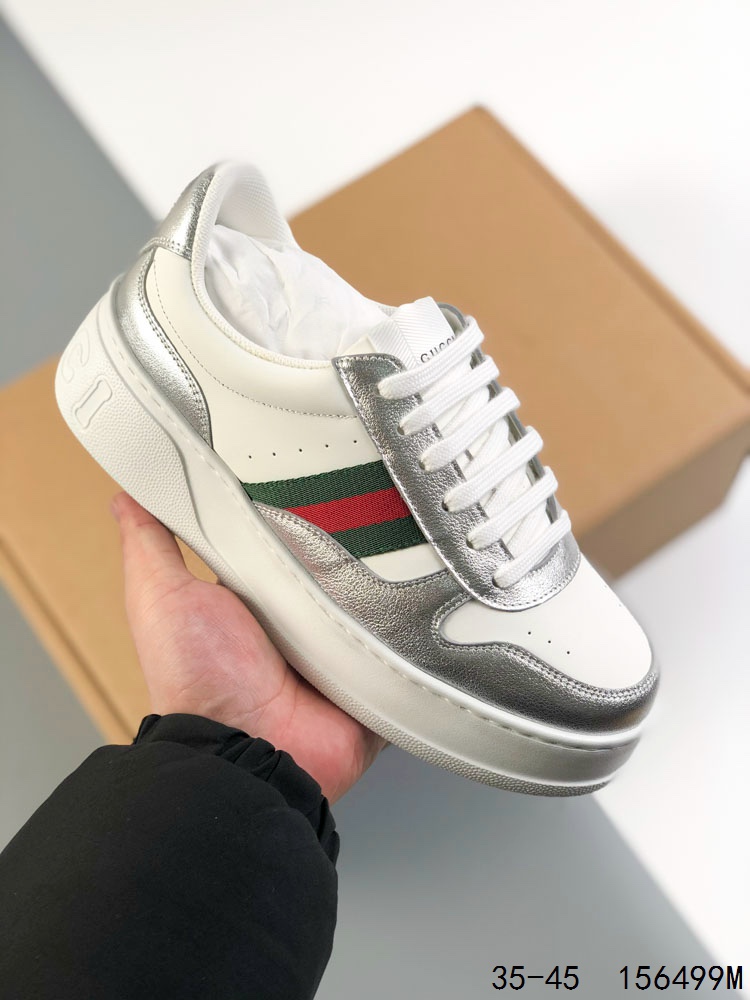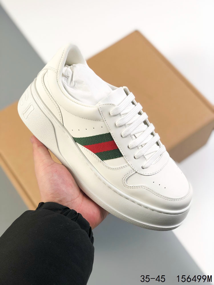 🈴️ 💰340 【公司级】GUCCI 古驰 百搭休闲运动板鞋。明星同款 小红书爆款老花 小白鞋 厚底增高男女士运动鞋 皮革鞋面真标 经典高奢品牌GUCCI古驰 复古松糕跟休闲运动鞋。 尺码:如图 ID:156499M