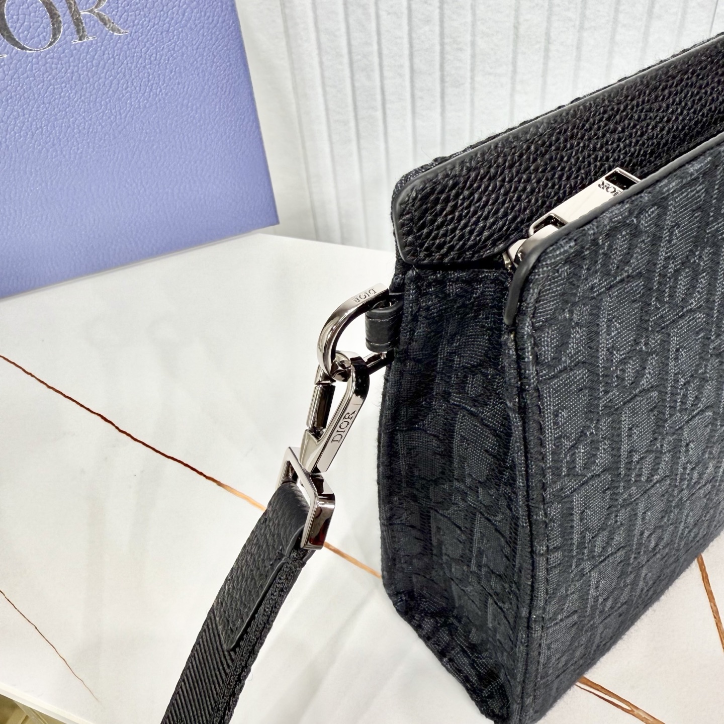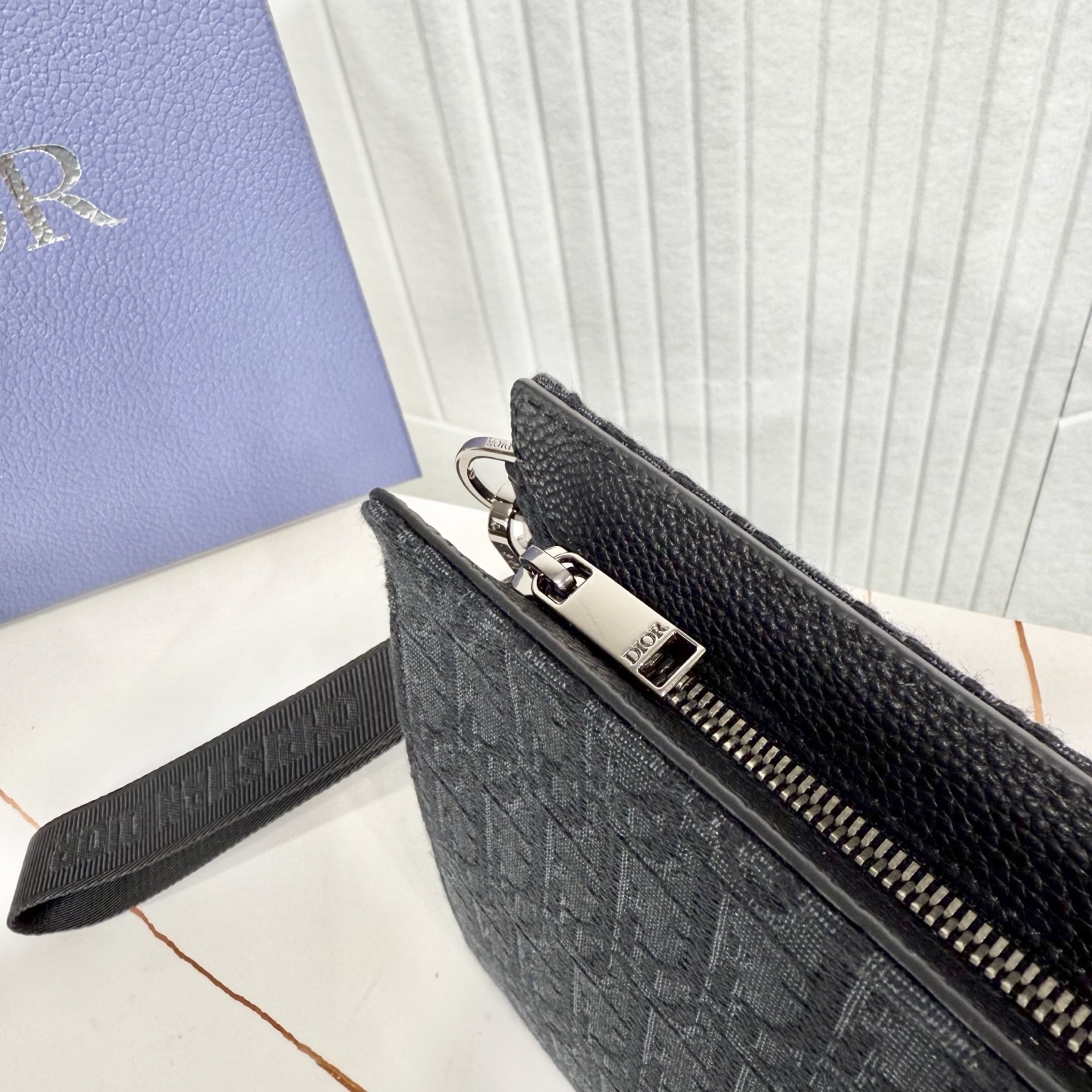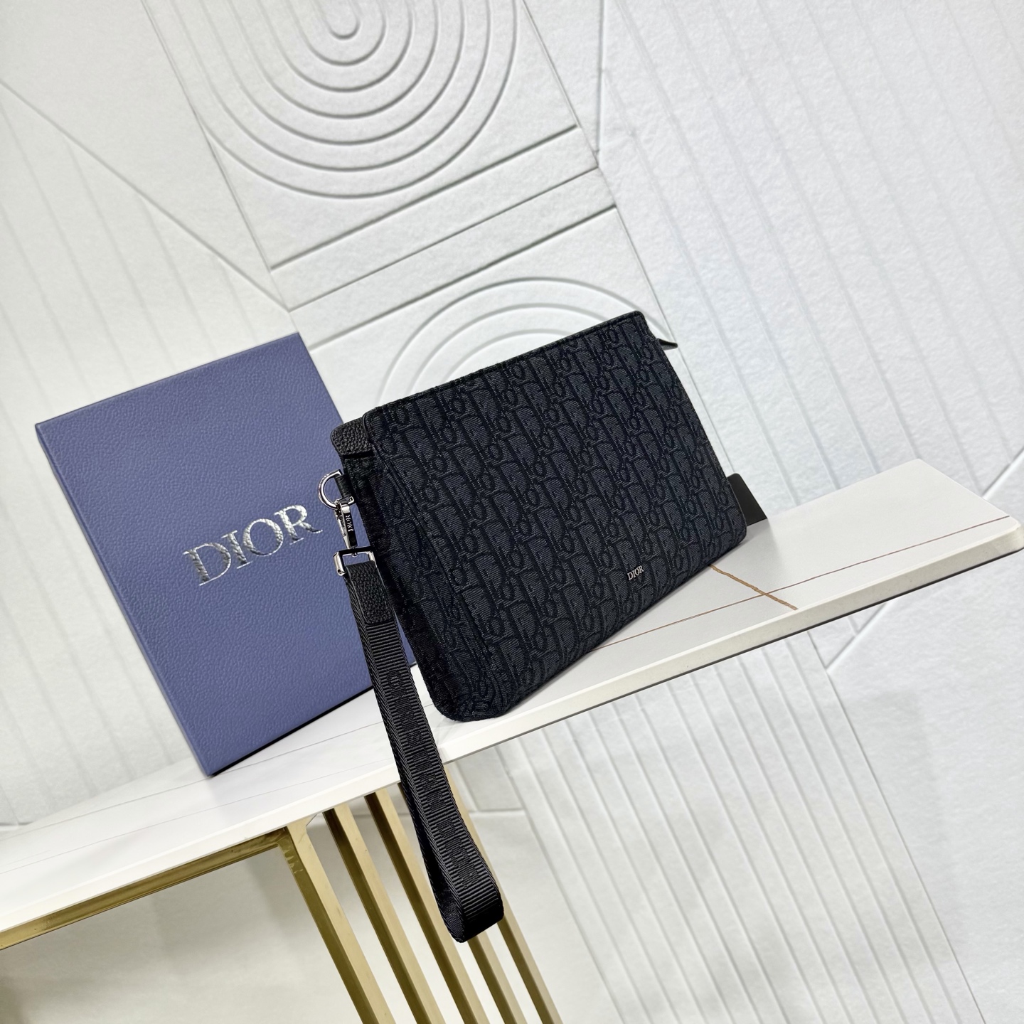 这款手拿包是 Dior 的主打单品。采用黑色 Oblique 印花面料等材质精心制作,从 Dior 档案汲取灵感,正面饰以 Dior 标志提升格调。设有一个可收纳手机的宽大拉链隔层,还有六个卡槽。搭配可拆卸的尼龙提花腕带,可手提或放入手袋中。