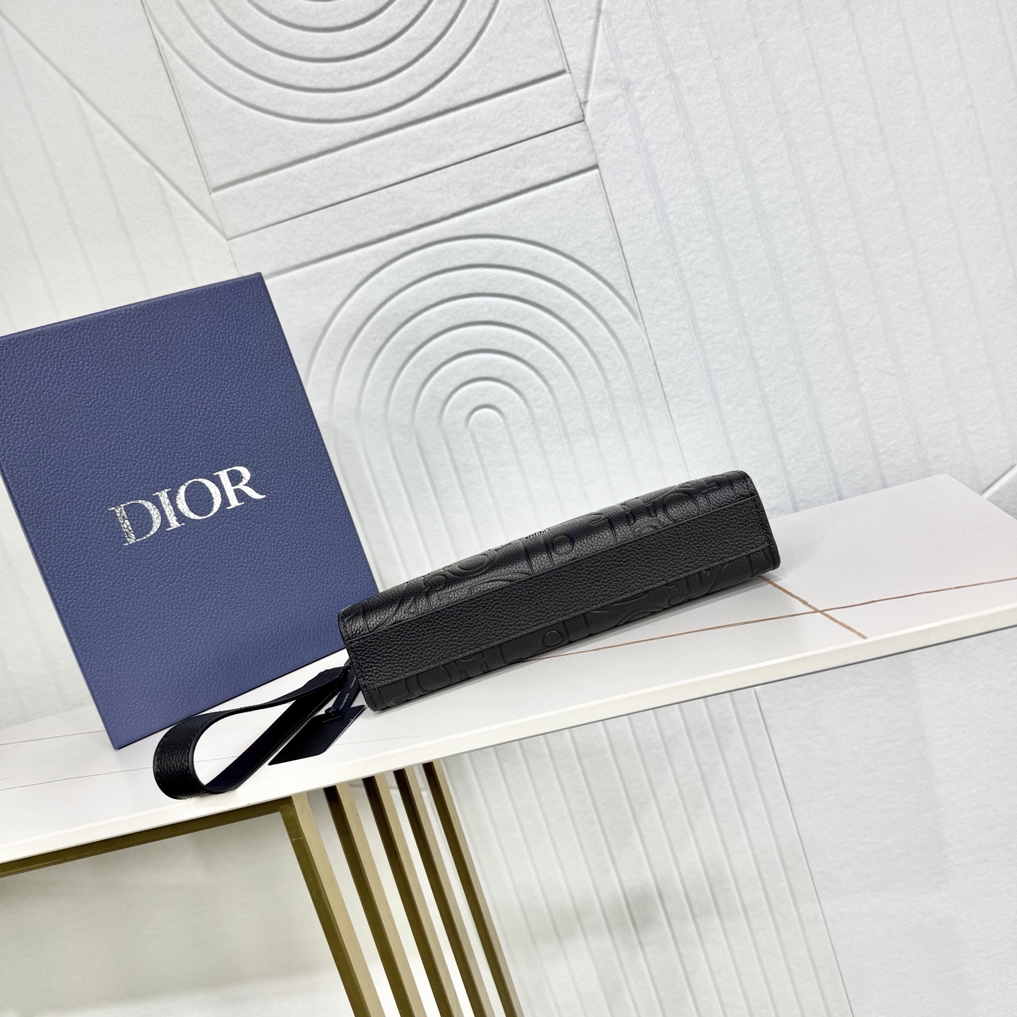 这款手拿包是 Dior 的主打单品。Dior Gravity 印花效果皮革采用压花工艺将经典图案精致呈现于黑色牛皮革之上,正面饰以 Dior 标志,充分彰显 Dior 工坊的精湛工艺。宽敞的拉链隔层适合收纳手机,还设有六个卡槽。搭配可拆卸的粒面牛皮革腕带,可手提或放入手袋中。
