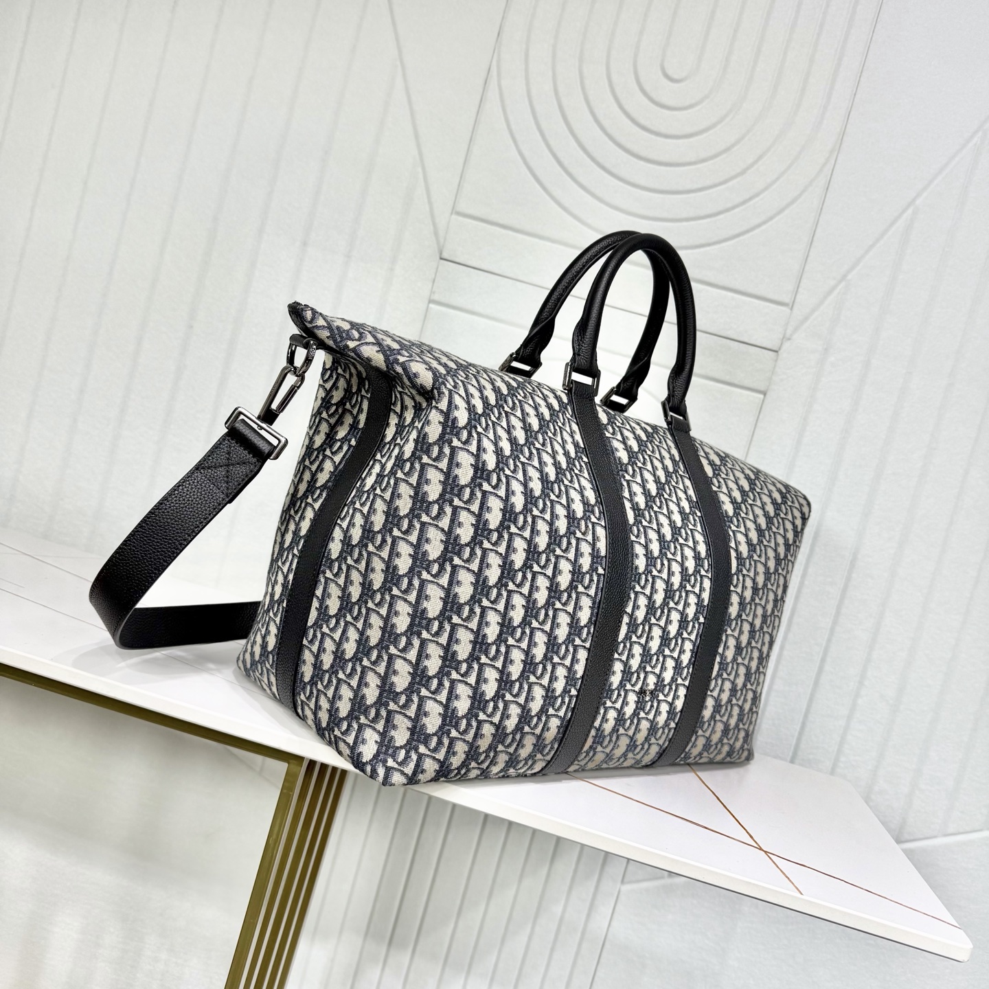 这款 Weekender 40 手袋彰显经久不衰的高雅风格。采用米色和黑色 Oblique 印花面料等材质精心制作,全新演绎经典的 Dior 图案,饰以黑色粒面牛皮革细节和正面的 Dior 标志提升格调。设有宽大的拉链主隔层,可收纳各种周末假日的用品。搭配可调节、可拆卸的肩带和顶部皮革手柄,可手提或肩背。