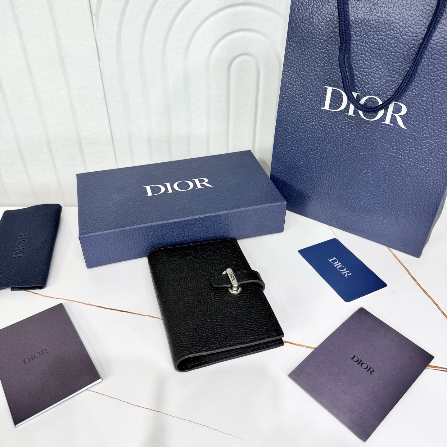 小牛皮制成,采用 Dior Normandie 标志性环和带有 Dior 标志性的皮革表带,采用 Dior 工作室的非凡技艺精心制作而成。它有两个平坦的隔间、一个登机牌空间和五个卡槽。它是任何冒险的理想旅行伴侣,也可以作为大卡夹每天使用。