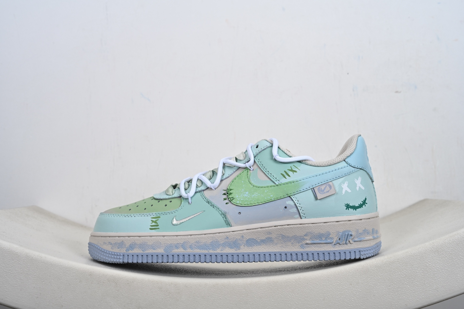 手绘涂鸦“薄荷漫绘”Nike Air Force 1  “Mint Wash Sketch”空军一号定制板鞋