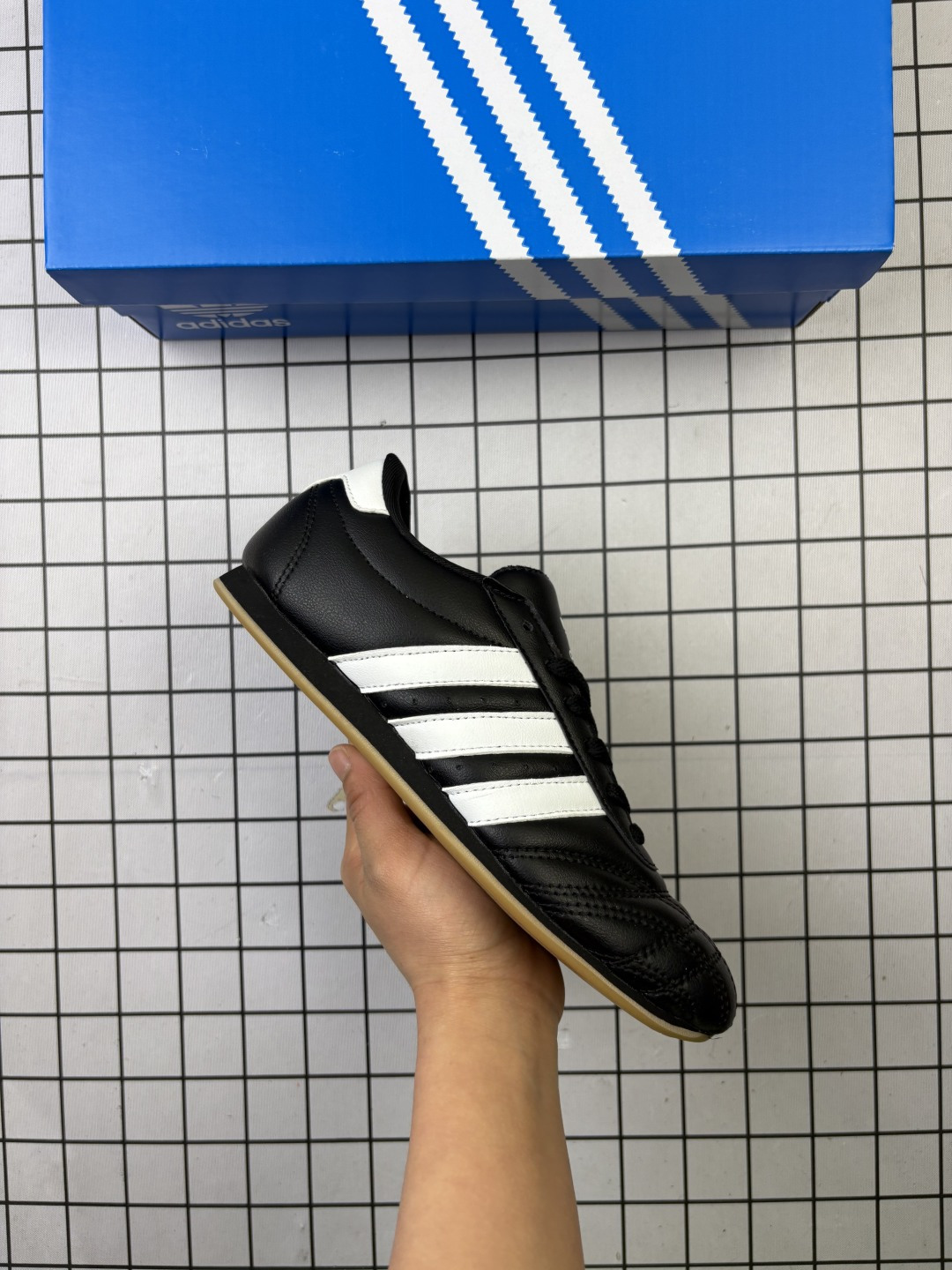 🈴💰100 采用软质粒面牛剖革鞋面材质#中底嵌入EVA切片缓震#外置耐磨橡胶鞋底片❗️ 底越薄,越时髦!Jennie穿搭代言款,阿迪达斯Adidas Originals Taekwondo Lace Low"White Black"跆拳道系带系列低帮经典复古薄底休闲运动舒适训练慢跑鞋XF“皮革白黑生胶底”JS1194 尺码:36 36⅔ 37⅓ 38 38⅔ 39⅓ 40 40⅔ 41⅓ 42 42⅔ 43⅓ 44 45 现在正值 90 年代复古风和厚重 “老爹鞋” 的流行,adidas Originals 最新推出的女式鞋款 TAEKWONDO 却逆行其道。顾名思义,TAEKWONDO (跆拳道)受武术鞋启发,符合人体工程学,鞋身极其 “苗条”,采用 slip-on 的款式,弹性的帆布鞋面,配备独特的 gum rubber 生橡胶鞋底,金色的 logo 在鞋后侧增添了质感。虽然这款鞋的确借鉴了 adidas 以往的设计经验,但总体而言,它比许多同时代的运动鞋都更加简约。尤其因Jennie提前上脚带货,在韩女中人气火爆,让她们对今年的adidas薄底鞋搭配早已驾轻就熟,Taekwondo刚推出,大量高赞上身帖迅速涌现 编码757 36-45