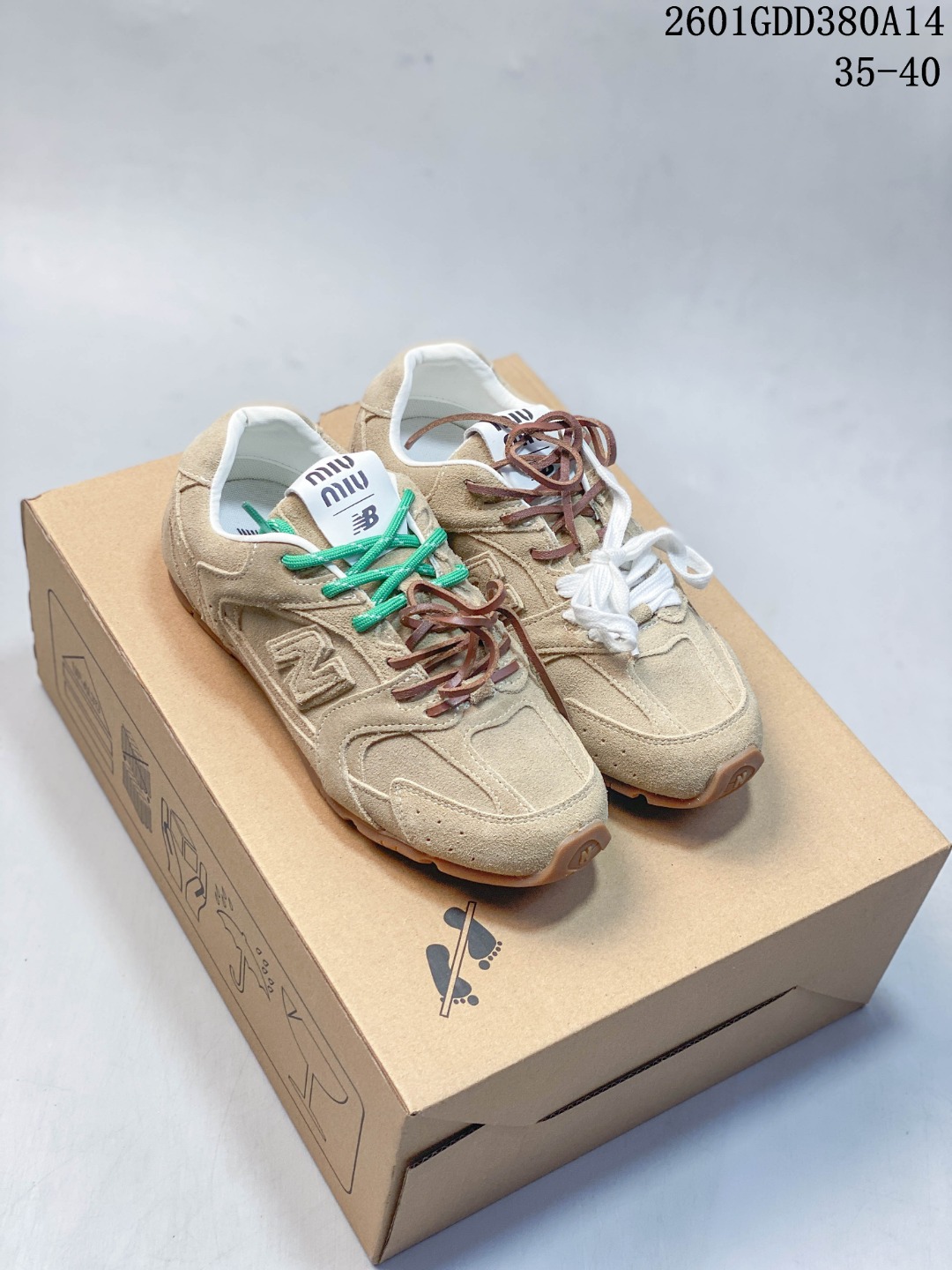 💰220 MiuMiu缪缪 x New Balance NB530情侣款 休闲 运动鞋 阿甘鞋 德训鞋 原版开发 经典NB530运动鞋中汲取灵感推出了自己的迭代版本530SL。该运动鞋采用解构和轻盈的设计,有棕色和米色配色,带点彷旧的布料包覆着 New Balance 530的轮廓,刻意磨损、不均匀的皮革色调,让波鞋多了不同的个性 这款联名鞋款配有双鞋带设计,包括白色、橙色、棕色和黄色鞋带,营造出随性系起的感觉,为整体感又多了几分 Boyish 以及率性感 24s开春走秀场曝光、非常流行的美拉德配色平底鞋,双鞋带设计、独特风格,非常有质感!上脚非常轻便 百搭 全球以及国内社交平台已爆众多上脚图 多位顶级流量明星 Size: 35-44 01GDD380A14
